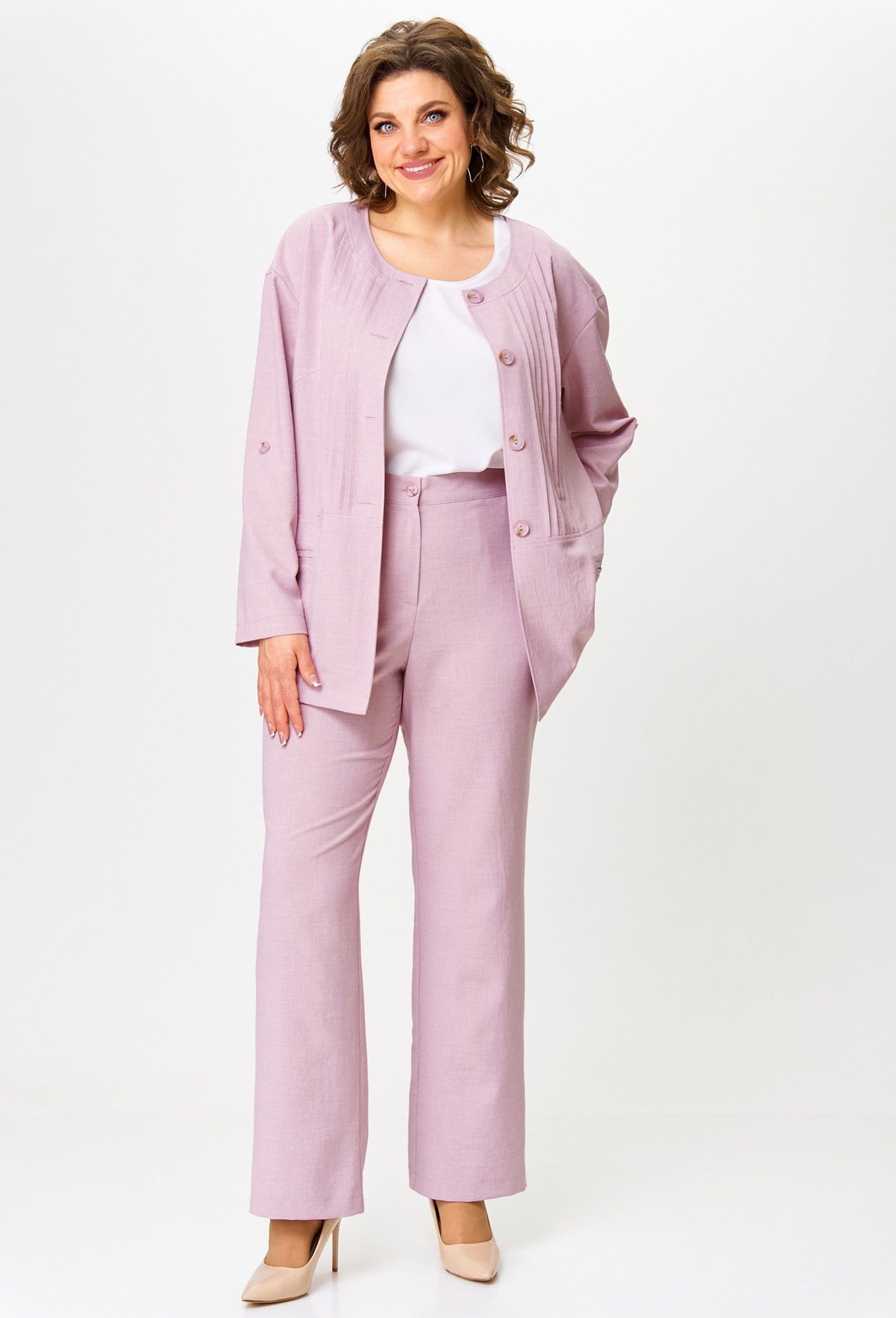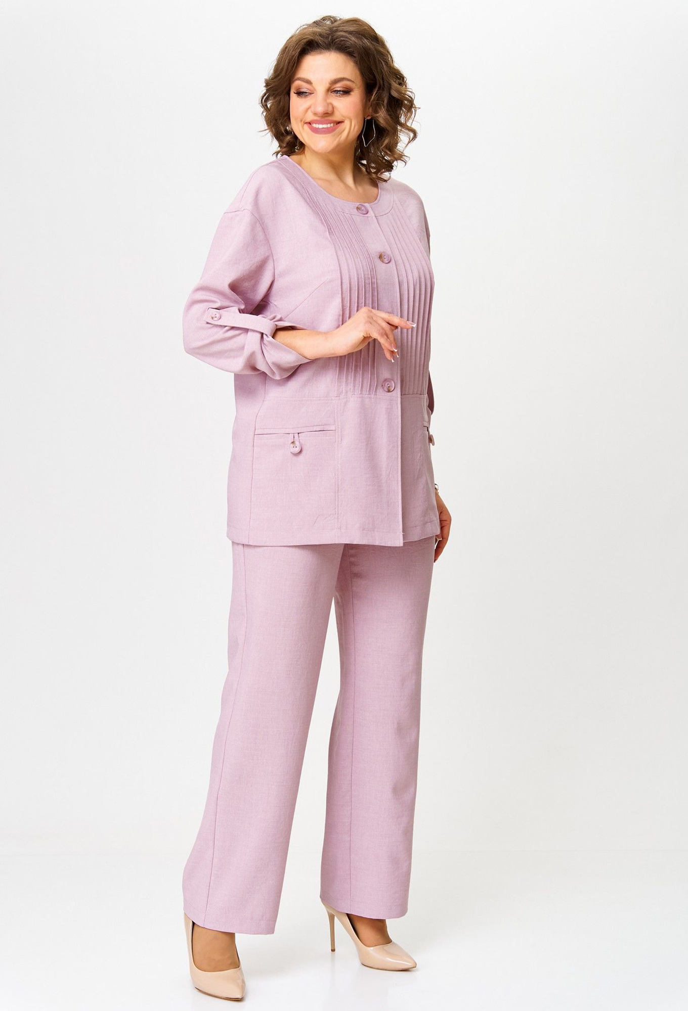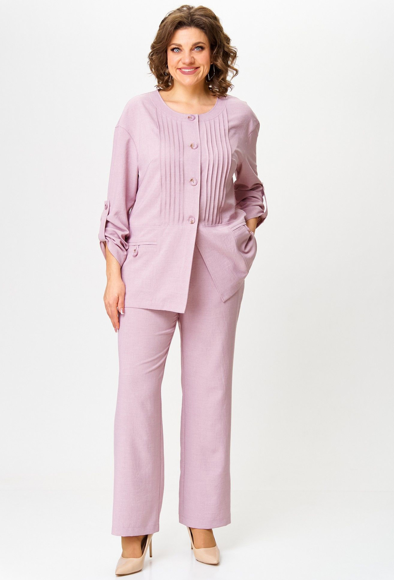 Модель: Анастасия Мак 1234 пыльная роза..показатьi> Рост: 164 см (девушка на фото ростом 170см) Сезон: Весна-Лето Тип ткани: 100% ПолиэстерКостюм состоящий из жакета и брюк, выполнен из однотонной ткани.