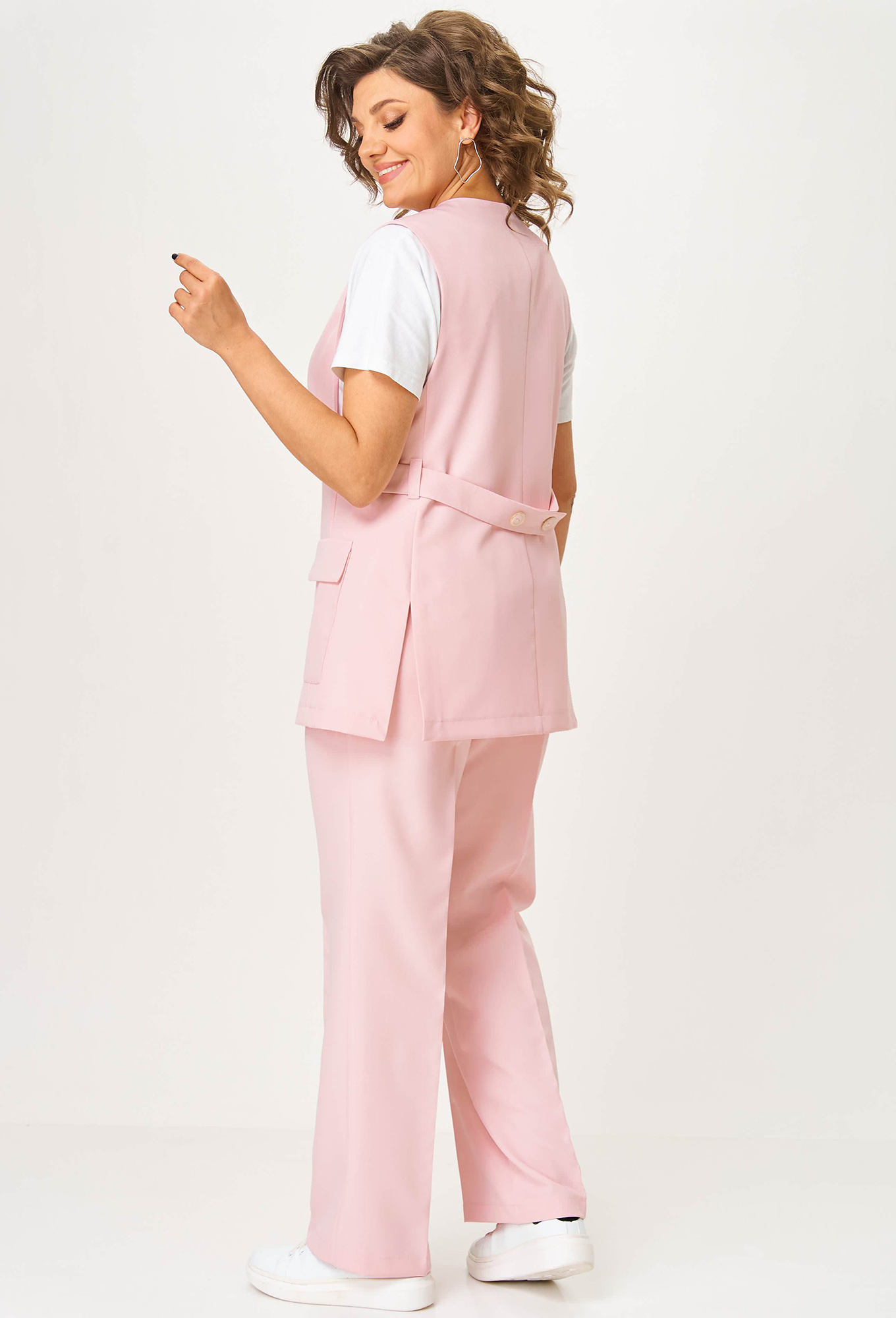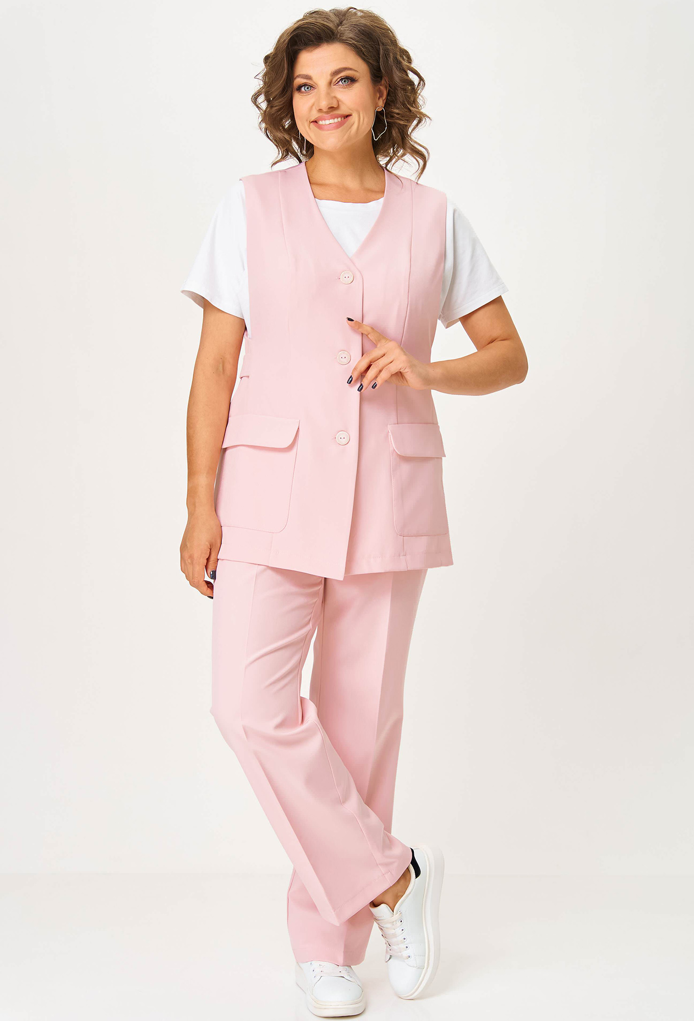 Модель: Анастасия Мак 1236 розовый ..показатьi>Рост: 164 см (девушка на фото ростом 170см) Сезон: Весна-Лето Тип ткани: 97% полиэстер, 3% спандексКостюм состоящий из жилета и брюк выполнен из однотонной ткани._x000D_
