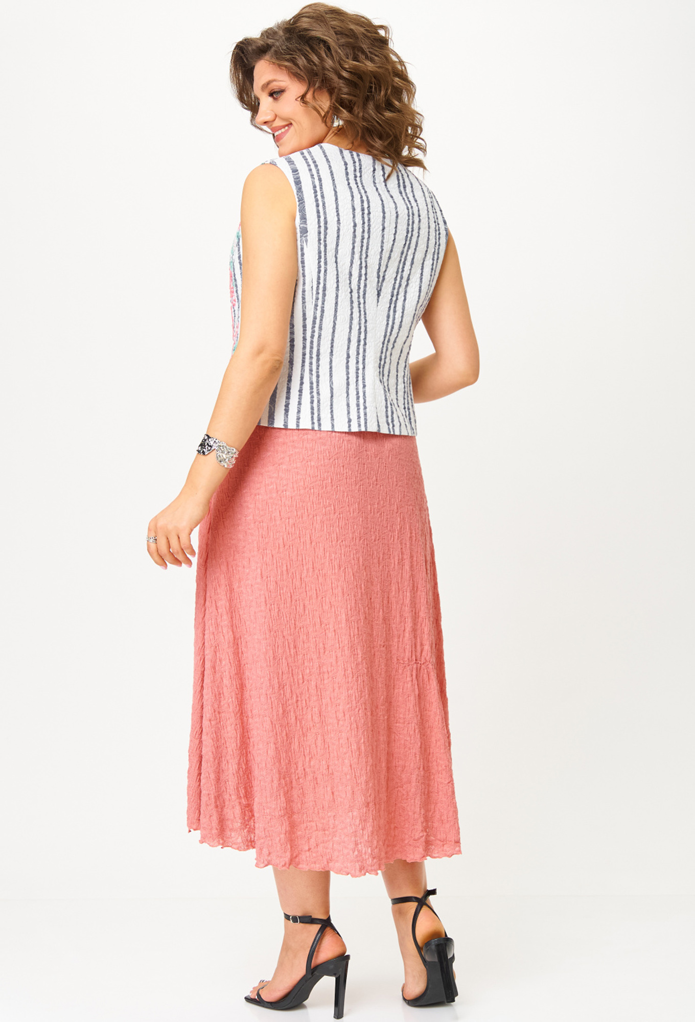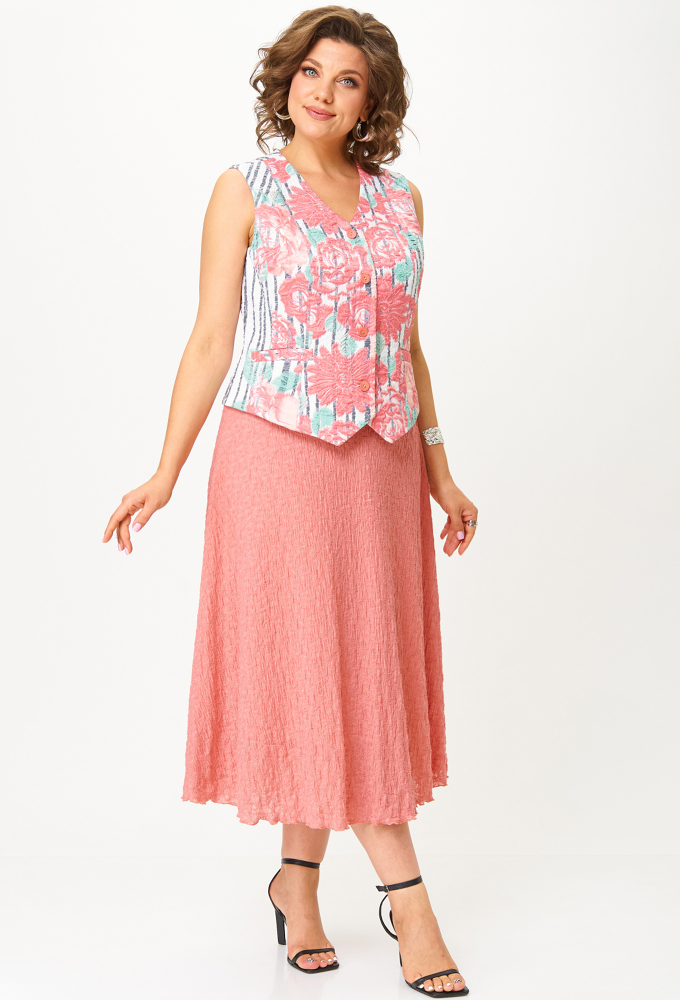 Длина жилета в 50р - 49.5см, юбка - 83смДлина жилета в 58р - 50см, юбка - 83см>Рост: 164 см (девушка на фото ростом 170см) Сезон: Весна-Лето Тип ткани: Жилет- 100% полиэстер Юбка- 58% х/б, 37% полиэстер, 5% эластан
