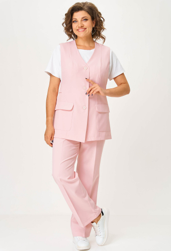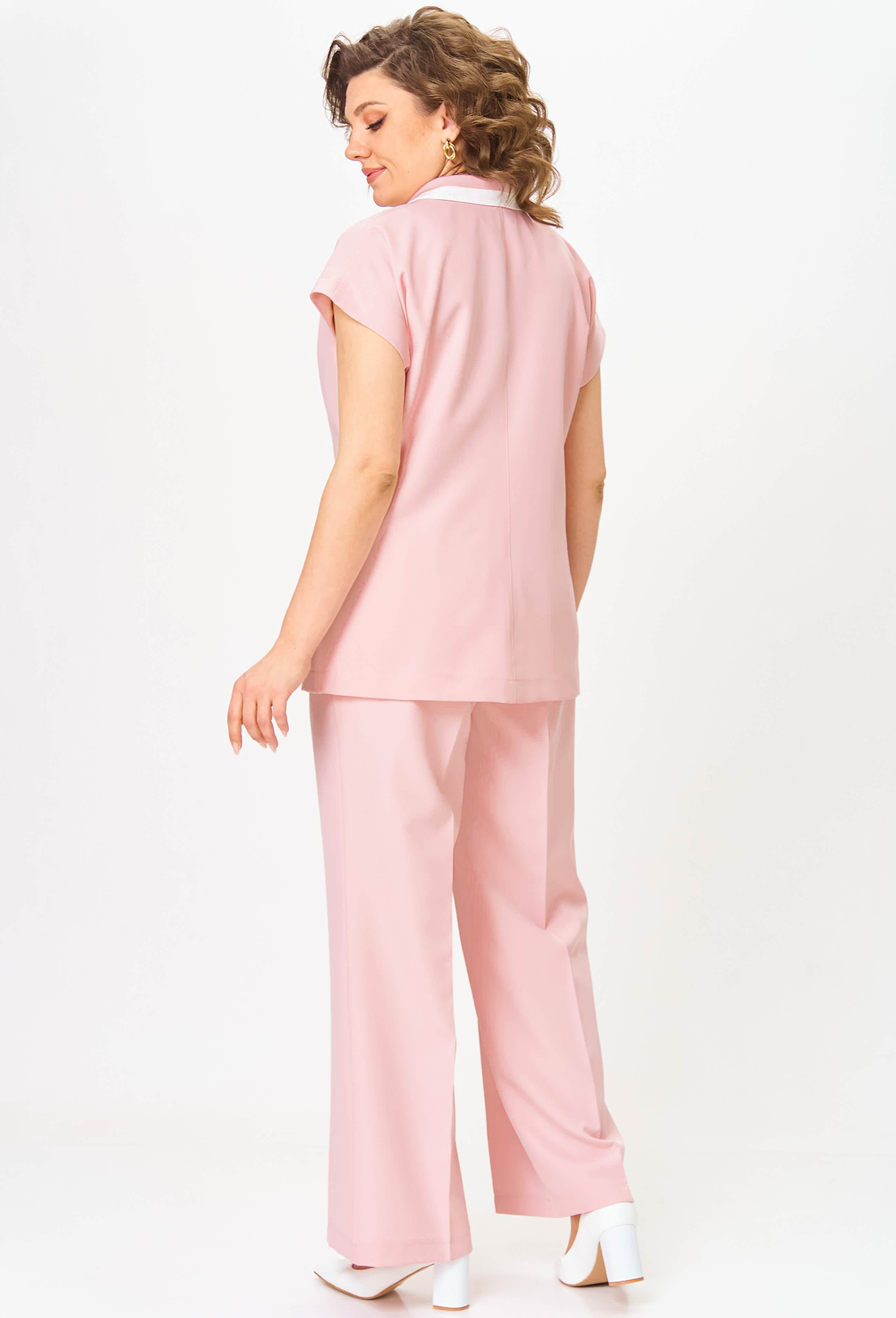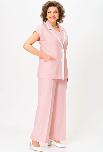 Модель: Анастасия Мак 1257 розовый ..показатьi>Рост: 164 см (девушка на фото ростом 170см) Сезон: Весна-Лето Тип ткани: 97% полиэстер, 3% спандексКостюм состоит из жакета и брюк, выполнен из однотонной ткани, в качестве отделки использована однотонная ткань, контрастная по цвету к основной ткани. Жакет прямого силуэта. Полочка жакета с двубортной застежкой на петли и пуговицы. Горловина V-образной формы, с отложными лацканами и воротником пиджачного типа. Воротник и край борта с притачной отделочной планкой из контрастного цвета. Полочка с вертикальными рельефами. Спинка со средним швом. Рукава цельнокроеные, короткие._x000D_
