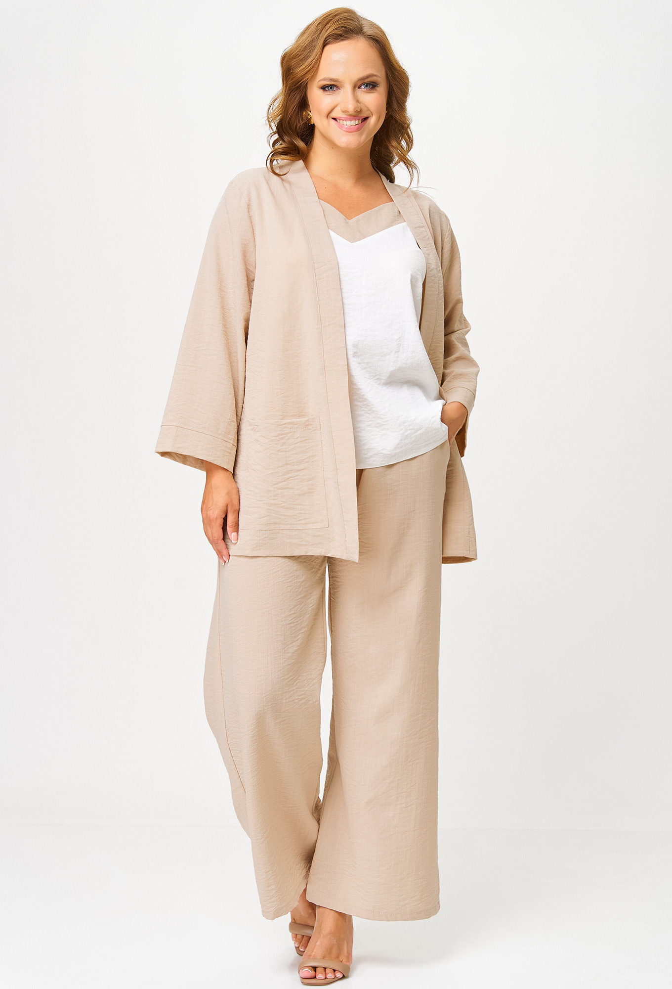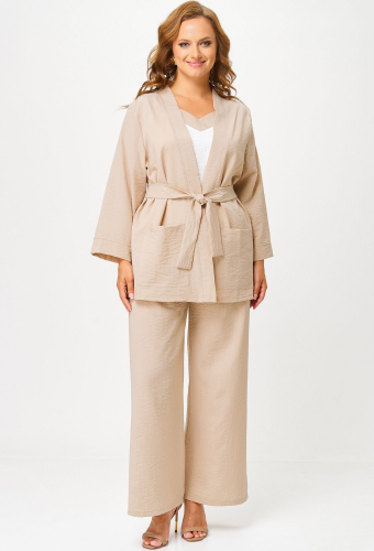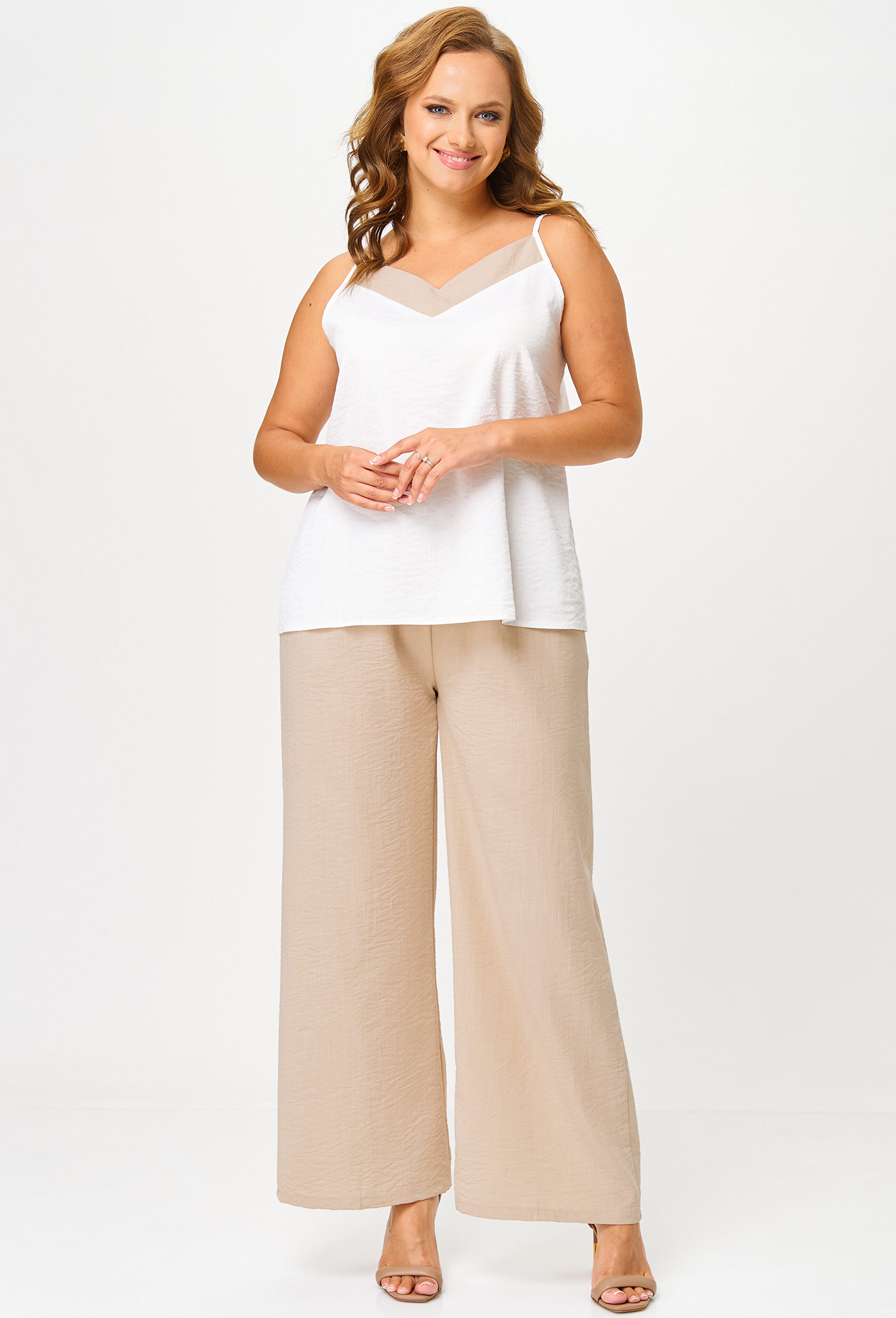 Модель: Анастасия Мак 1291-1 бежевый ..показатьРост: 164 см (девушка на фото ростом 170см) Сезон: Весна-Лето Тип ткани: 71% полиэстер, 23% вискоза, 6% спандексКомплект состоит из топа, брюк и жакета. Жакет и брюки выполнены из однотонной ткани. Топ выполнен из однотонной ткани, контрастной по цвету ._x000D_