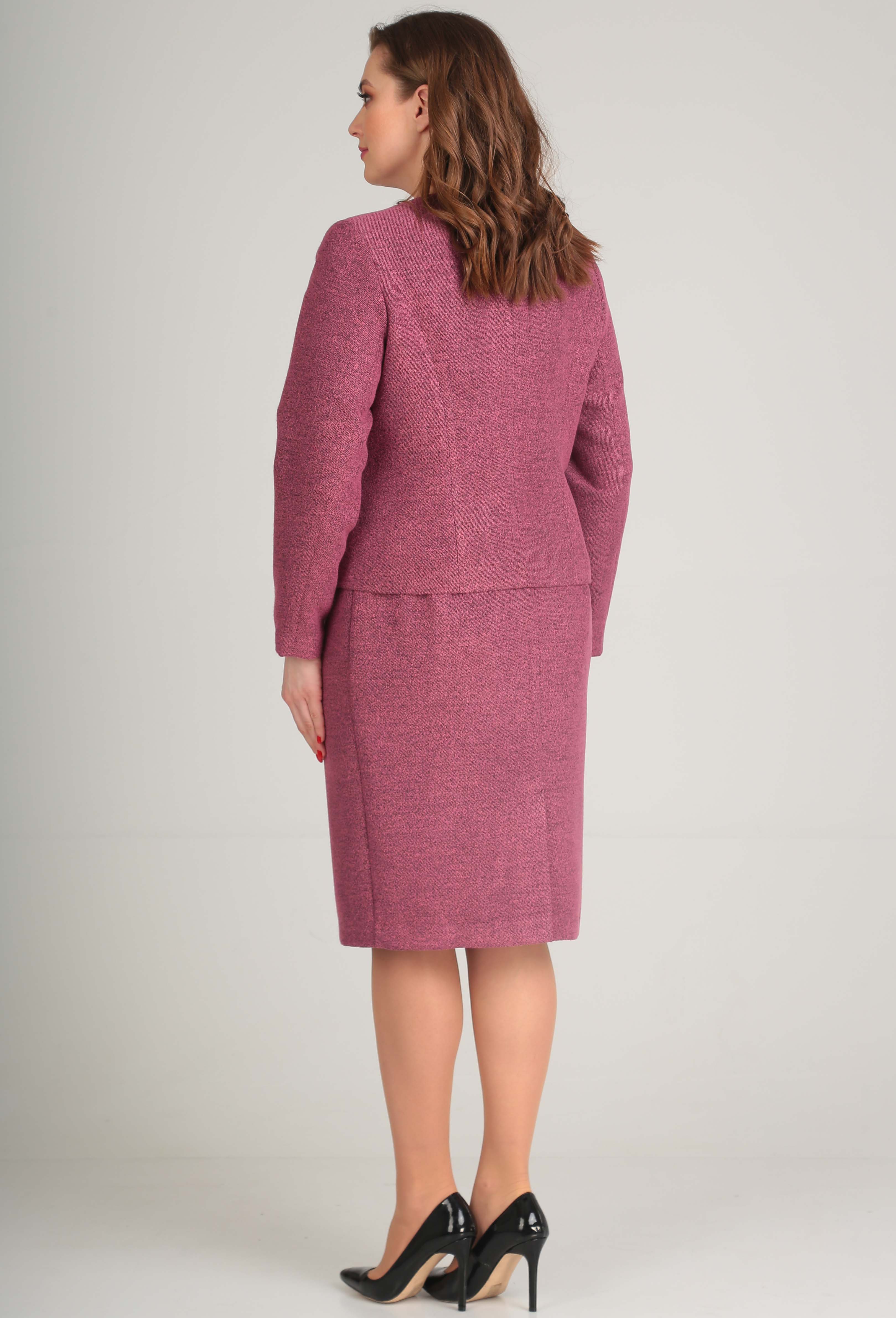 Модель: Анастасия Мак 544 малина ..показатьРост: 164 см (девушка на фото ростом 170см) Сезон: осень-зима Тип ткани: 65% ПЭ, 35% вискозаКостюм, состоящий из жакета и юбки, выполнен из костюмной ткани в диагональный рубчик. Ткань меланжевая с мелким эффектом "букле". Жакет полуприлегающего силуэта. Полочка жакета с центральной застежкой на четыре петли и пуговицы, вертикальными рельефами, нагрудной вытачкой. Горловина круглой формы. Спинка со средним швом и вертикальными рельефами. Рукав длинный, втачной, двухшовный. Жакет на подкладке. В левой верхней части полочки выполнен декор в виде пришивных элементов - брошек. Юбка классическая, облегающая бедра и зауженная к низу, на подкладке.