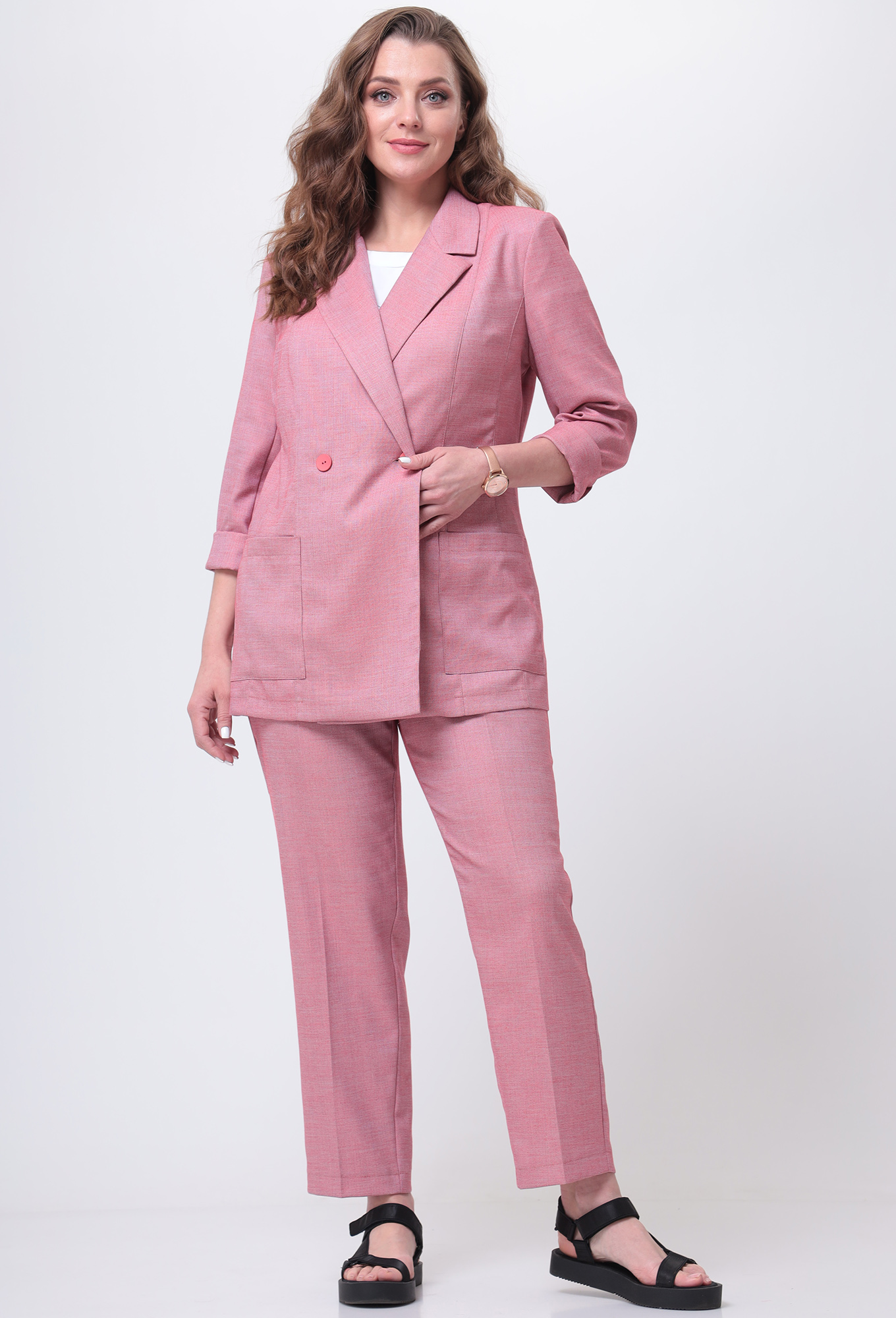 Модель: Анастасия Мак 603 меланж ..показатьРост: 170 см (девушка на фото ростом 170см) Сезон: Весна-Лето Тип ткани: 90% ПЭ, 8% Вискоза, 2% СпандексКостюм состоит из жакета и брюк. Костюм выполнен из однотонной ткани. Жакет прямого силуэта, без подклада. Полочка жакета с вертикальными вытачками, отрезными бочками и двубортной застежкой на две пуговицы. Горловина V-образной формы. На нижней части полочки выполнены накладные карманы. Спинка со средним швом и отрезными бочками. Рукав длинный, втачной, двухшовный. Брюки со стрелками, длиной до косточки. В верхней части брюки прилегающие, в колене свободные и к низу зауженные. По передним половинам обработаны карманы, в среднем шве застежка на молнию. На задней половине обработаны талиевые вытачки. Брюки на притачном поясе с эластичной тесьмой и шлевками. Застежка по поясу на петлю и пуговицу.