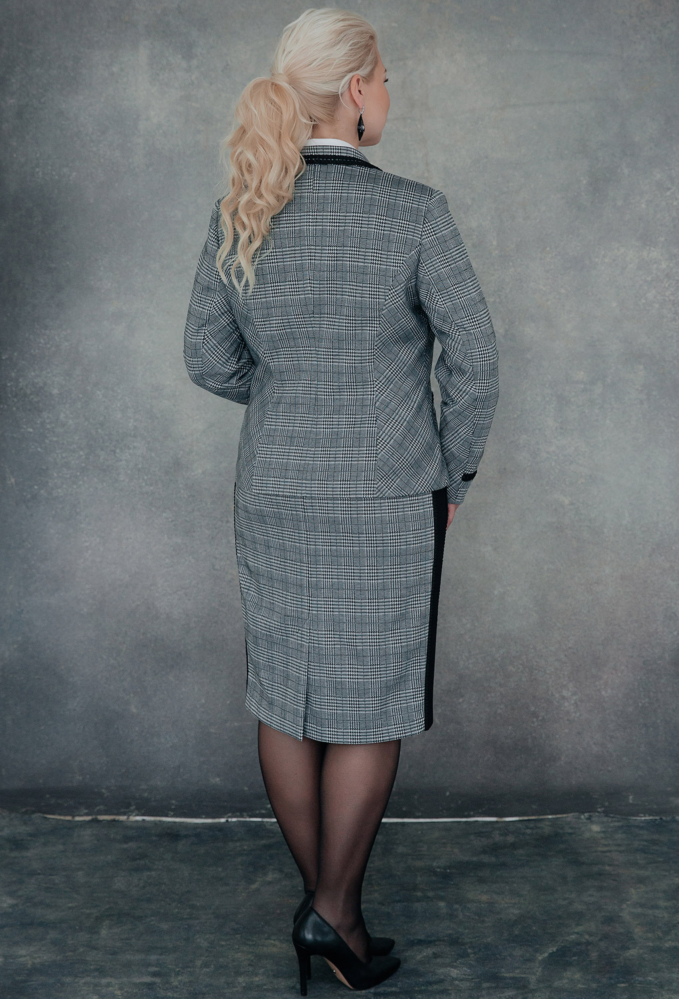 Модель: АСВ 2461 черно-белый клетка <..показатьli>Рост: 164 см (девушка на фото ростом 170см) Сезон: Осень-Зима Тип ткани: Вискоза 60%, нейлон 34%, спандекс 6%Подкладка- Вискоза 95%, эластан 5%Жакет на подкладке полуприлегающего силуэта с пиджачным воротником и застежкой на три пуговицы, рукава длинные двухшовные. По переду накладные карманы.