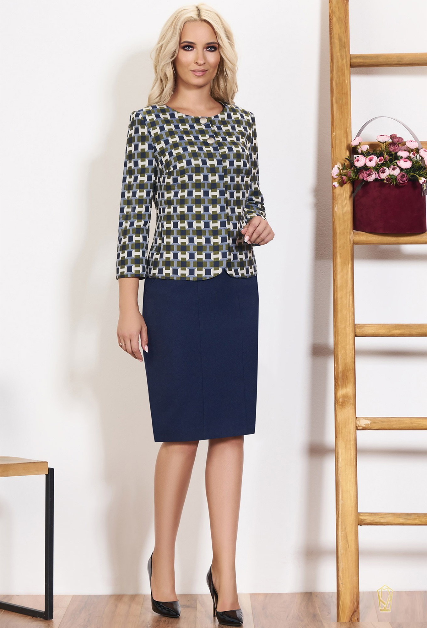 Модель: Базалини 3508 / 3522 Рост..показать: 170 см (девушка на фото 170см) Сезон: осень-зима Тип ткани: жакет- 100% полиэстер, юбка- 50% п/э, 47% вискоза, 3% спандекс- однобортный жакет полуприлегающего силуэта с застежкой на 2 декоративные и четыре потайные пуговицы с круглым вырезом горловины и бочком