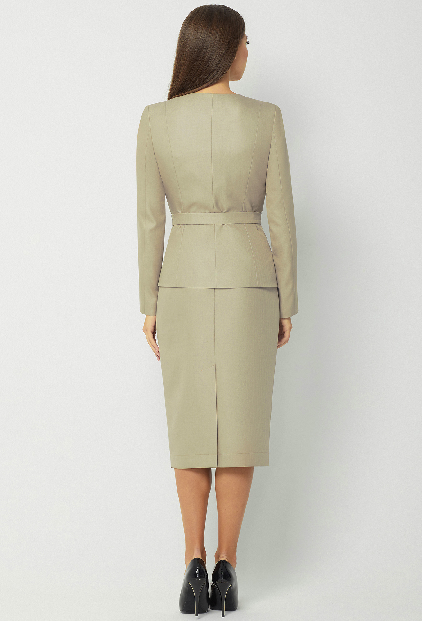 Модель: Базалини 3779/3714 песочный <..показатьli>Рост: 170 см (девушка на фото ростом 170см) Сезон: Круглогодичный Тип ткани: Полиэстер- 65%, Вискоза- 32% , Эластан- 3%Однобортный жакет полуприлегающего силуэта с потайной застёжкой, с V-образным вырезом горловины по переду и овальной по спинке. Перед с двумя вертикальными рельефами и четырьмя отделочными рамками, через которые проходит пояс с пряжкой из основной ткани. Спинка со средним швом и двумя рельефами. Рукава втачные двухшовные. На подкладке.