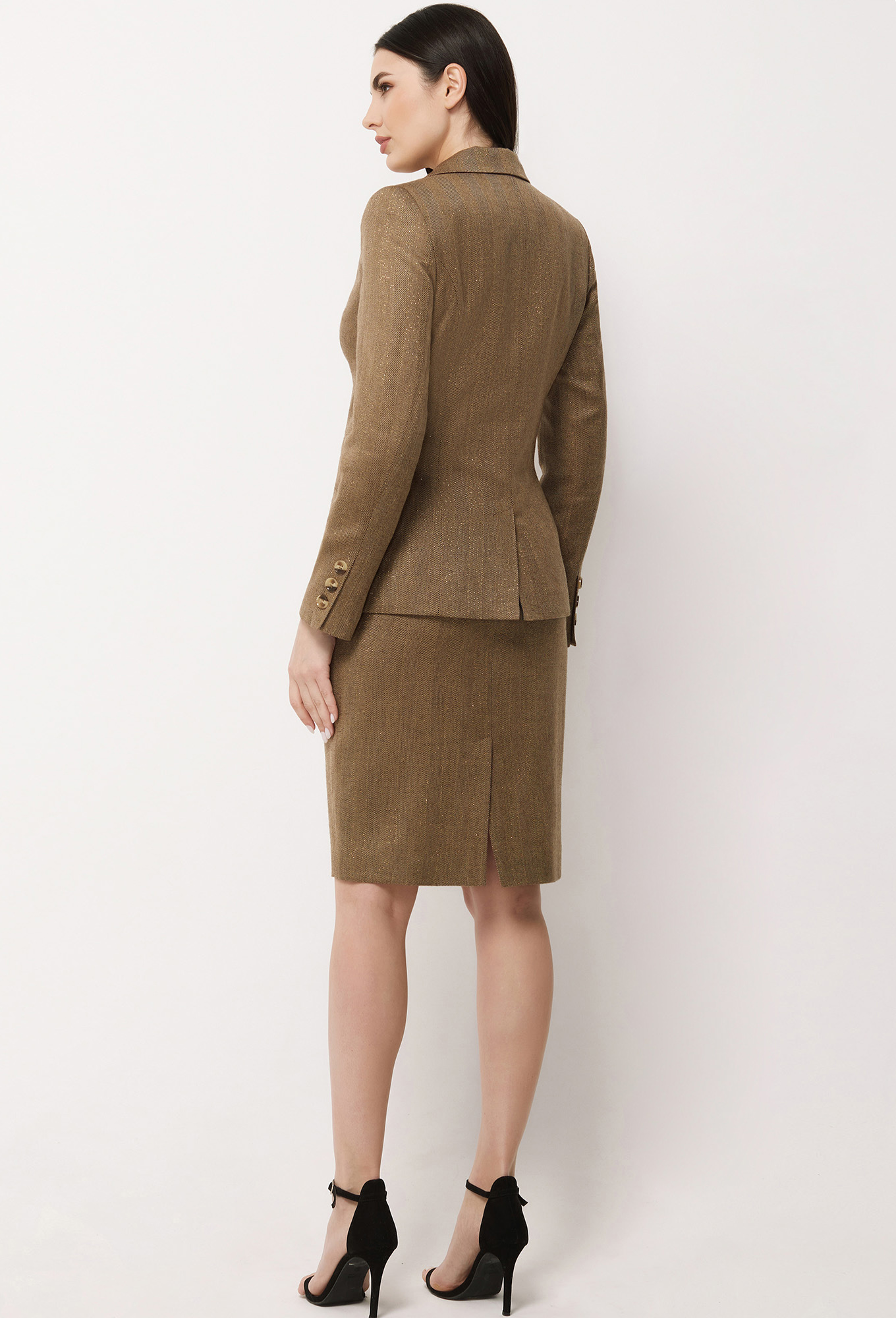 Длина жакета: 44р - 63см, 50р - 64смДлина рукава: 44р - 62см, 50р - 62смДлина юбки: 44р - 61см, 54р - 63см Рост: 170 см (девушка на фото 170см) Сезон: Осень-Зима Тип ткани: 64% Полиэстер, 32% Вискоза, 2% Эластан, 2% Метал. нить