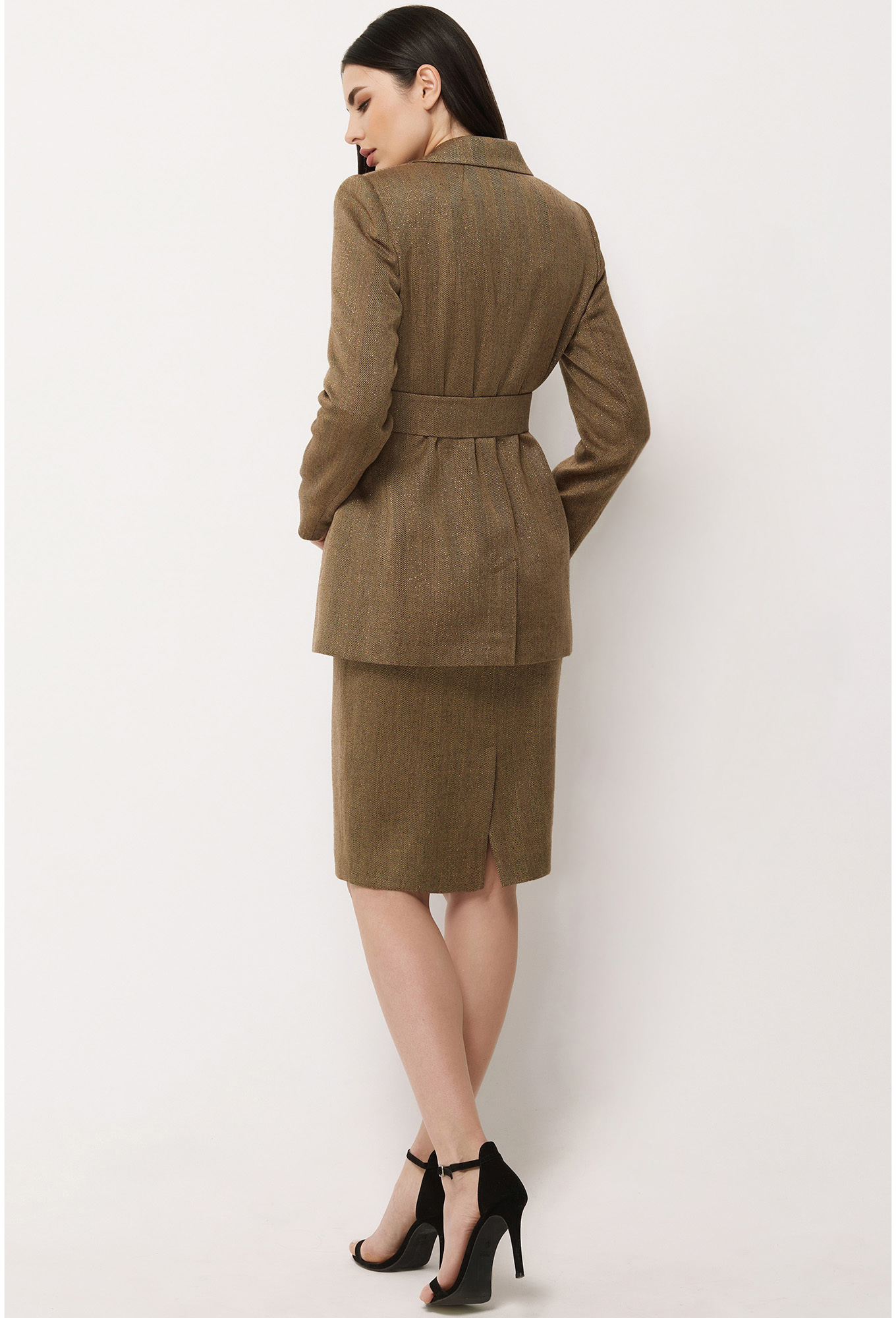 Модель: Базалини 4227/4249 коричневый..показать Рост: 170 см (девушка на фото 170см) Сезон: Осень-Зима Тип ткани: 64% Полиэстер, 32% Вискоза, 2% Эластан, 2% Метал. нитьКомфортный однобортный жакет. Перед с центральной застежкой на петлю и пуговицу и двумя горизонтальными карманами с рамками и клапанами. Средний шов спинки заканчивается шлицей. Рукава втачные двушовные. Воротник отложной с лацканами. Линия талии подчёркивается поясом с пряжкой из основной ткани. На подкладке.