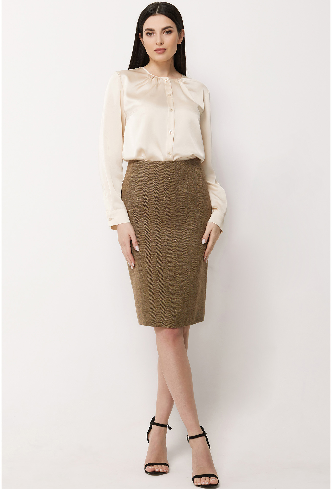 Юбка карандаш на обтачке, в среднем шве спинки обработана потайная молния и шлица, на подкладке.