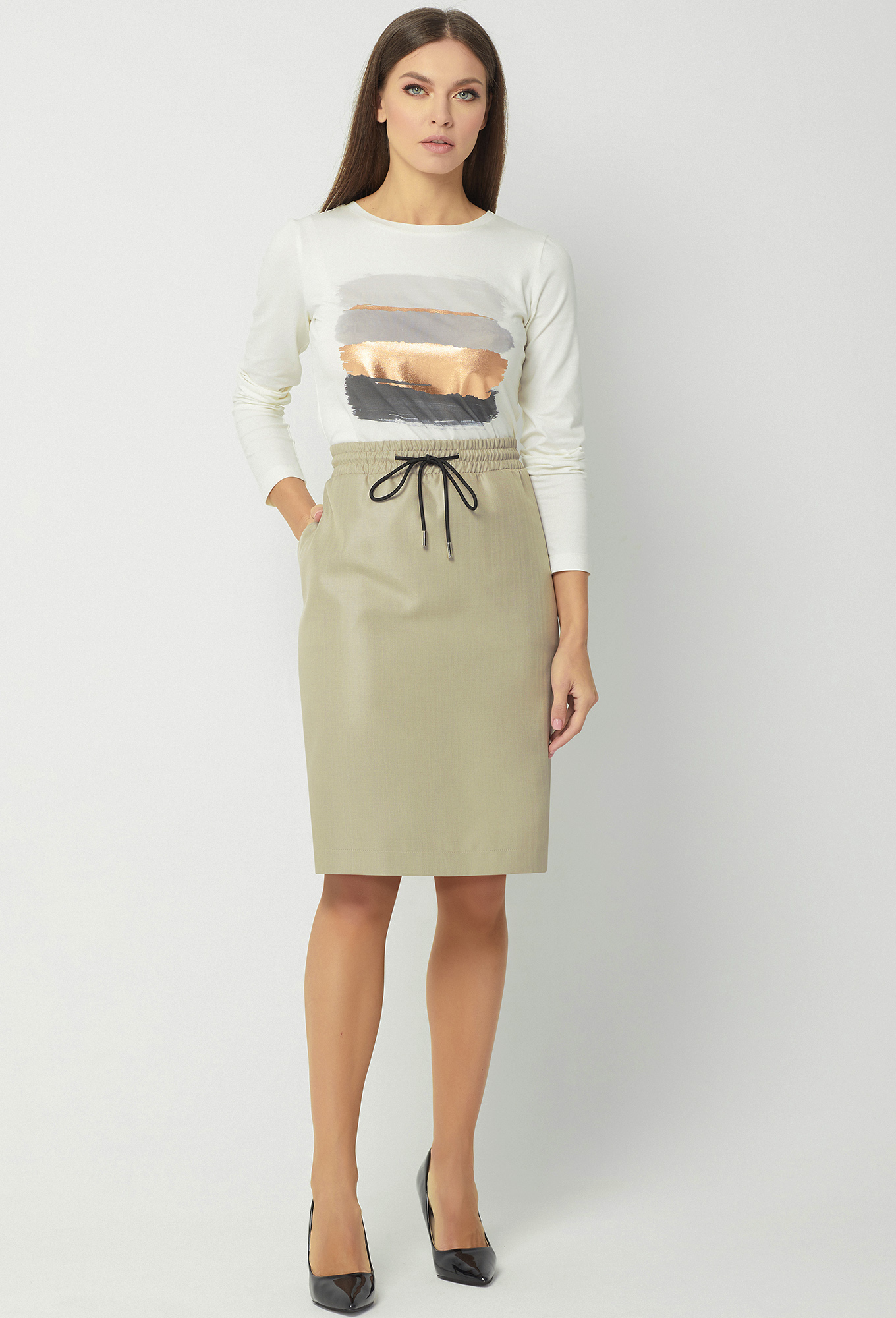 Длина юбки в 42р - 56см, в 52р - 62см.li>Рост: 170 см (девушка на фото 170см) Сезон: Круглогодичный Тип ткани: Полиэстер- 65%, Вискоза- 32% , Эластан- 3%