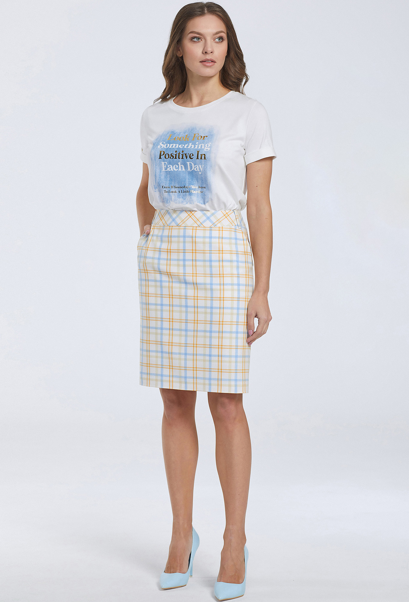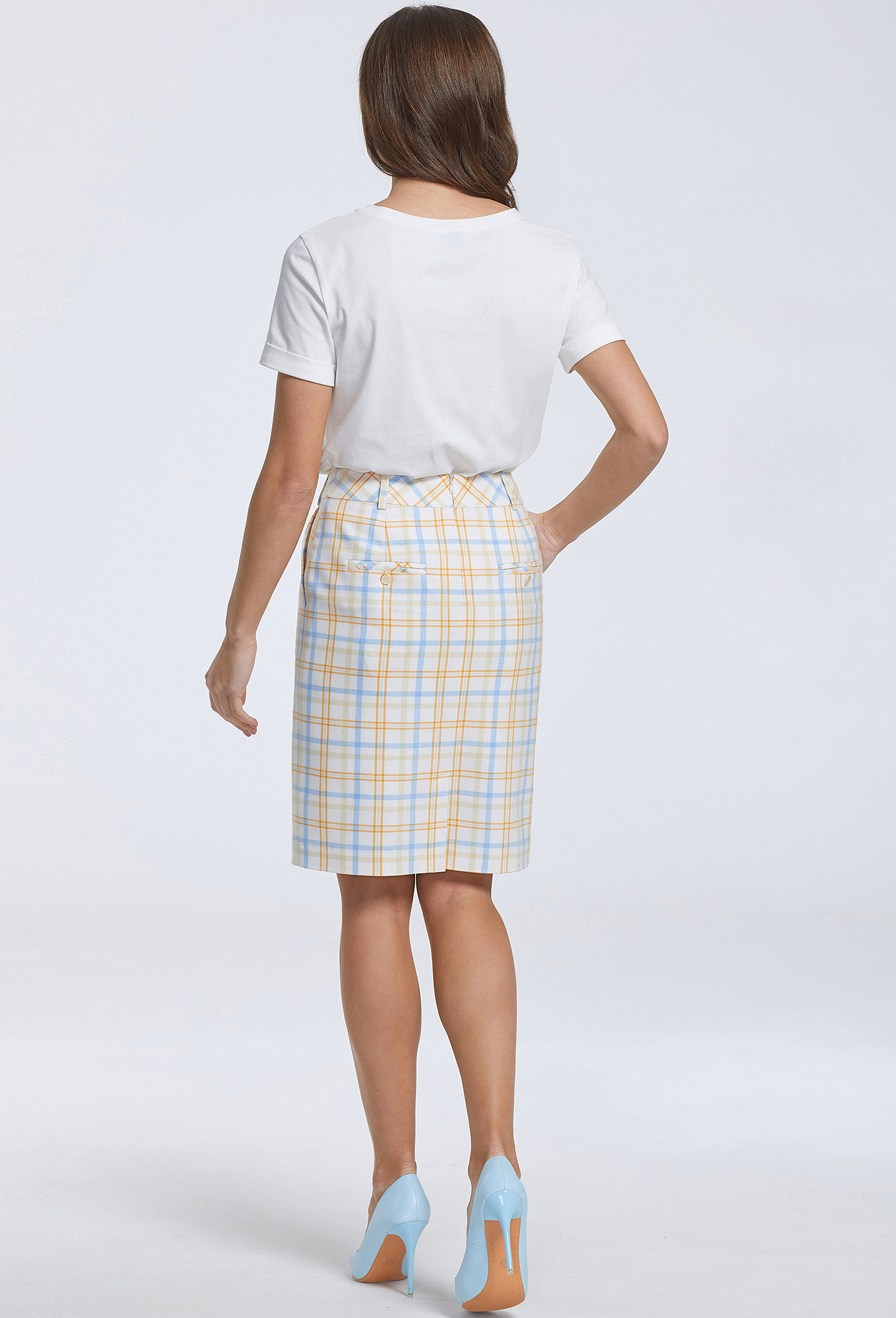 Красивая юбка с интересной задумкой игры клетки на поясе и рамках карманов. Спереди с косыми карманами сзади в среднем шве обработаны потайная молния и шлица. Модель выполнена из испанской, мягкой, приятной на ощупь ткани с добавлением вискозы с интересным ярким сочетанием клетки. На подкладке.
