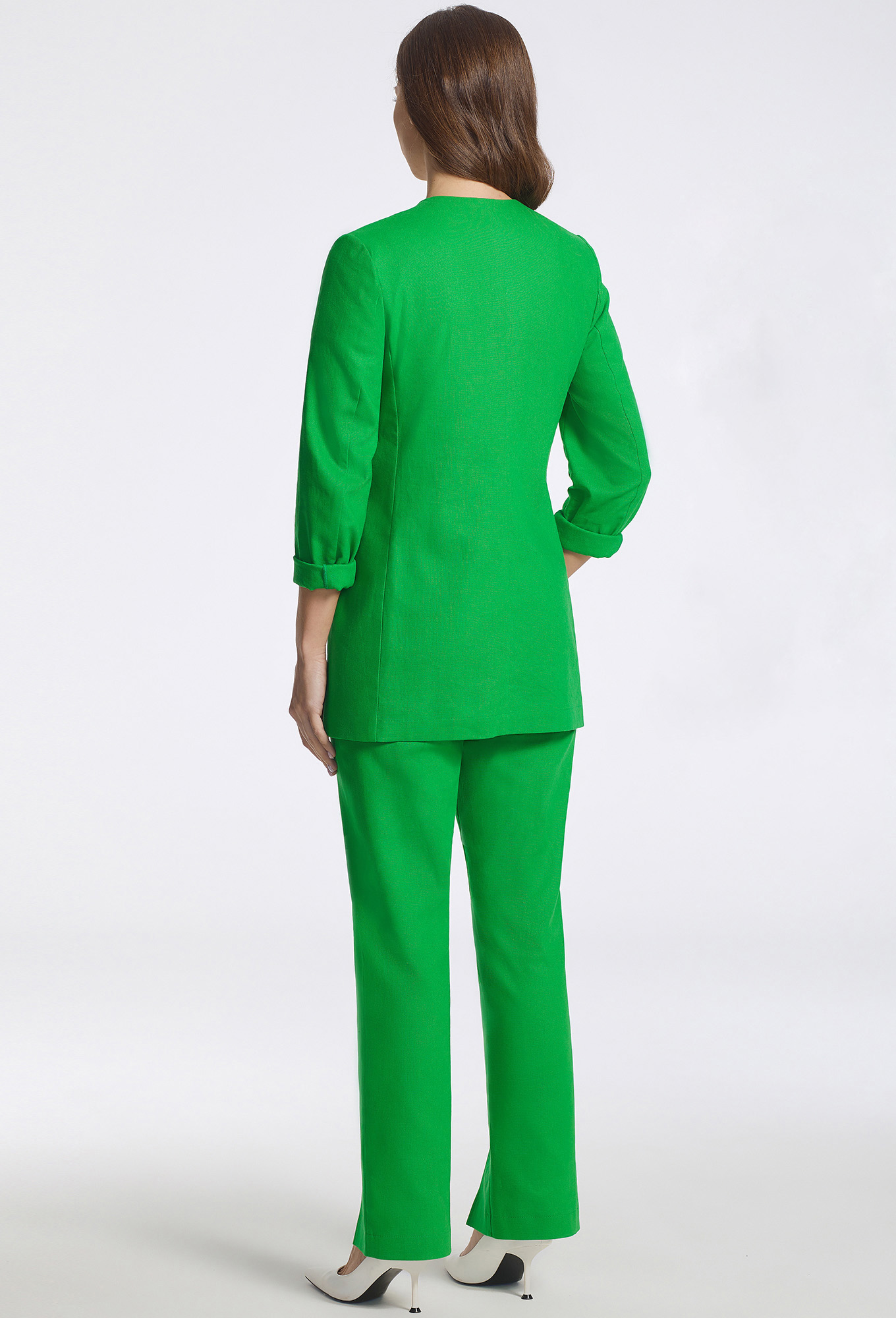 Модель: Базалини 4691/4654 зеленый ..показатьi>Рост: 170 см (девушка на фото ростом 170см) Сезон: Весна-Лето Тип ткани: 55% лён, 45% вискозаСтильный однобортный жакет полуприлегающего силуэта будет одинаково уместен и в наряде офиса, и в повседневном образе. Для пошива модели с застёжкой на петлю-пуговицу использовали льняную ткань с добавлением вискозы. Перед с глубоким V-образным вырезом с фигурными лацканами с скруглённой формой бортов, с отделочными клапанами, функциональными карманами в швах и интересным карманом-обманкой с сосборенной листочкой. Рукава втачные двухшовные. Изделие частично на подкладке.
