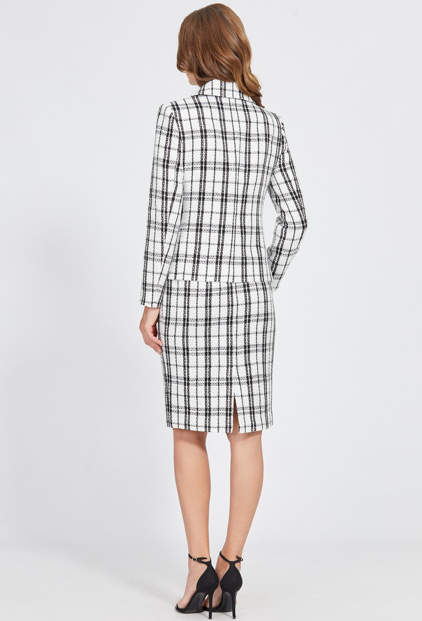 Модель: Базалини 4750/4821 белый клетка..показатьi> Рост: 170 см (девушка на фото ростом 170см) Сезон: Круглогодичный Тип ткани: 65% полиэстер, 30% вискоза, 5% акрилКомплект состоит из жакета и юбки. Изысканный жакет из мягкого фактурного твида в бело-черную клетку станет отличным дополнением к гардеробу современной женщины. Эта полуприлегающая модель оснащена отложным воротником и украшена декоративными клапанами, придающими образу законченность. Эффектные контрастные пуговицы вносят праздничное настроение и придают образу особую изысканность. Длинные двухшовные втачные рукава и качественная подкладка обеспечивают комфорт и превосходное качество изделия.Юбка-карандаш из мягкого фактурного твида в элегантном и стильном исполнении. Привлекает внимание утончённым клетчатым принтом в черно-белой цветовой гамме, добавляющим классику в повседневный гардероб. Модель средней длины, выполнена на подкладке, что обеспечивает комфорт при носке. В заднем шве предусмотрена потайная молния и небольшая шлица для удобства движений. Эта юбка отлично сочетается как с деловыми, так и с повседневными ансамблями, подчёркивая изысканный вкус своей владелицы.