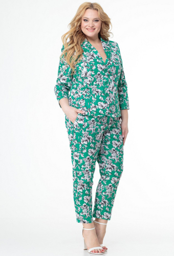 Модель: БЕЛЭЛЬСТИЛЬ 203/586 зеленый черно-..показатьбелые цветы Рост: 164 см (девушка на фото ростом 164см) Сезон: Весна-Лето Тип ткани: хлопок 97%, спандекс 3%Комплект: жакет и брюки. Жакет женский укороченный, полуприлегающего силуэта с центральной бортовой застежкой на пуговицы до линии перегиба лацкана. Спереди рельефные швы от плечевого шва,отрезной бочок и накладной карман. Спинка со средним швом и рельефами от плечевого шва. Рукав втачной, двухшовный, 3/4. Воротник пиджачного типа. Жакет на х/б подкладке. Фурнитура может отличаться от студийного фото.