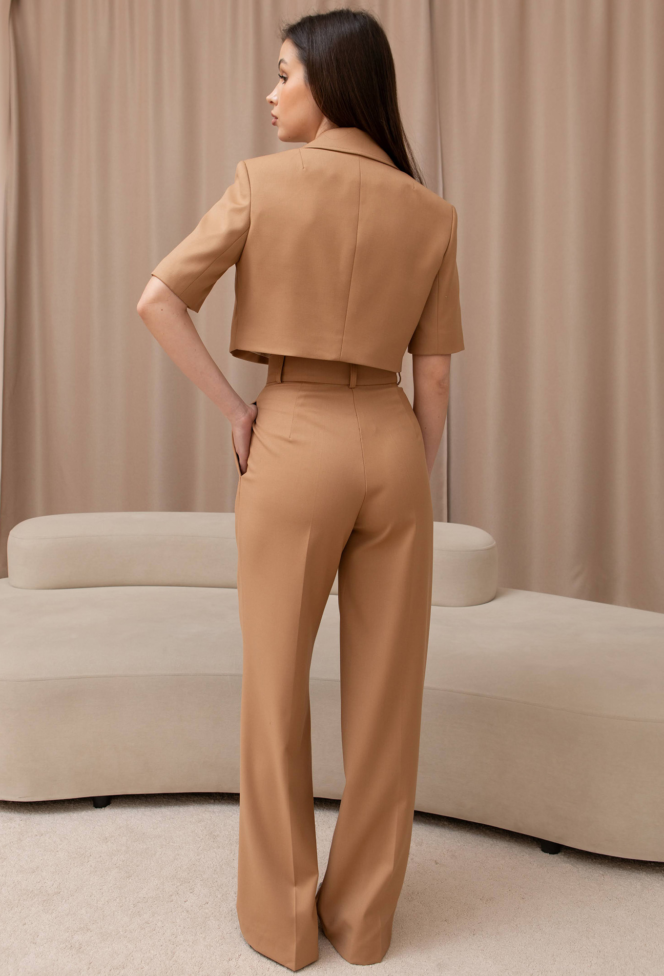 Длина жакета в 44 р - 38см, рукав - 25см. Брюки - 115см.Рост: 164 см (рост модели на фото 170см)