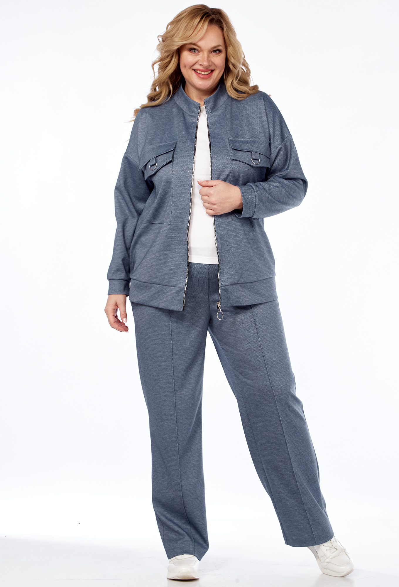 Модель: Элль-Стиль 2357 джинс Рос..показатьт: 164 см (девушка на фото ростом 170см) Сезон: Круглогодичный Тип ткани: Полиэстер 50%, вискоза 50%Женский костюм – идеальный образ для сочетание стиля и комфорта в повседневной жизни. Этот предмет гардероба состоит из двух частей из джемпера и брюк. Изделие свободного кроя, с передней застежкой-молнией, функциональные нагрудные карманы. Линия плеча спущена. Рукав втачной на манжете. Брюки прямого кроя с отстроченными стрелками, пояс притачной на резинке. В боковых швах карманы. Данный комплект не сковывает движение, выполнен из трикотажного полотна