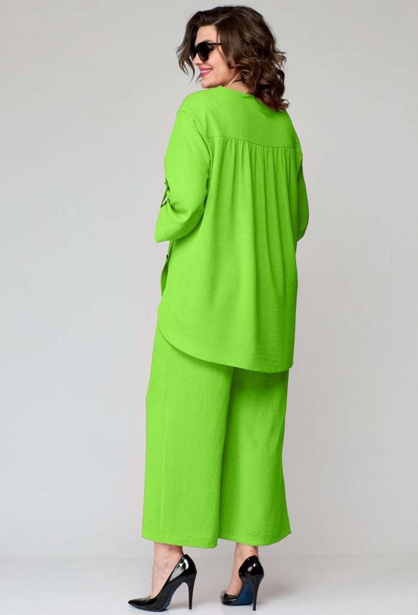 Модель: ЕВА ГРАНТ 7126 салатовый ..показатьРост: 170 см (рост модели на фото 170см) Сезон: Весна-Лето Тип ткани: Полиэстер 74%, вискоза 21%, спандекс 5%Комплект женский нарядно-повседневный, состоящий из блузы и брюк. Блуза свободного прямого силуэта в ассиметричным низом. Вырез горловины округлый. По переду притачные планик с имитацией застежки. Декором служат пуговицы. По низу переда притачная манжета. По спинке - кокетка, в шве которой - сборка. Рукав спущенный, длина рукава регулируется с помощью паты. Брюки- кюлоты с ассиметричным запахом с правой стороны. Пояс на резинке, в боковых швах карманы.Рост: 170 см (рост модели на фото 170см)
