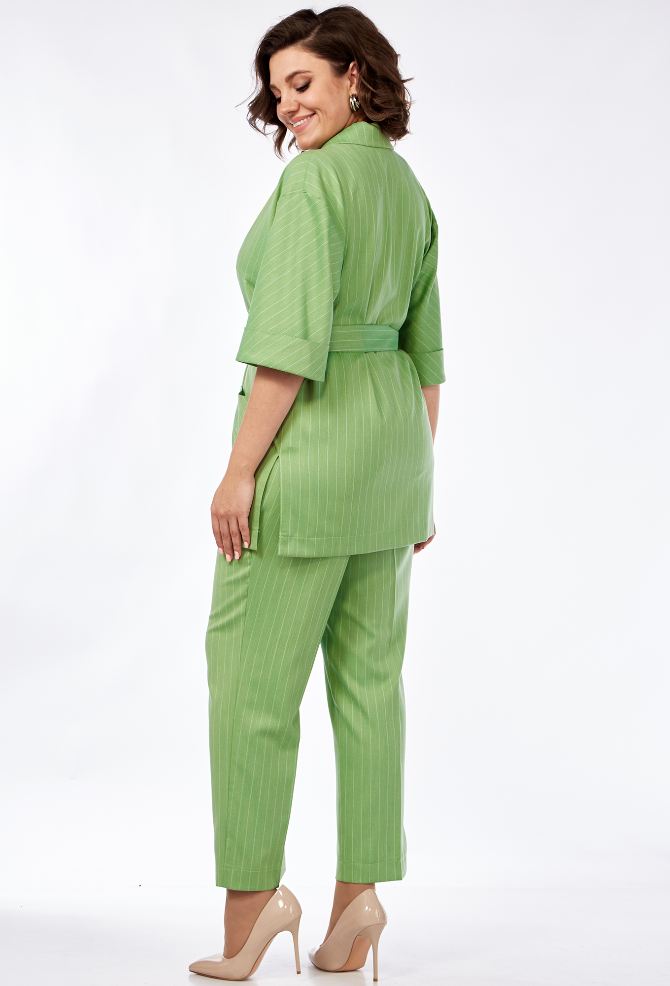 Модель: Галерея 700 зелёный Рост:..показать 164 см (девушка на фото ростом 170см) Сезон: Весна-Лето Тип ткани: Полиэстер – 65 % , вискоза – 32% , эластан – 3%Костюм женский прямого силуэта из костюмной ткани, состоящий из жакета и брюк._x000D_