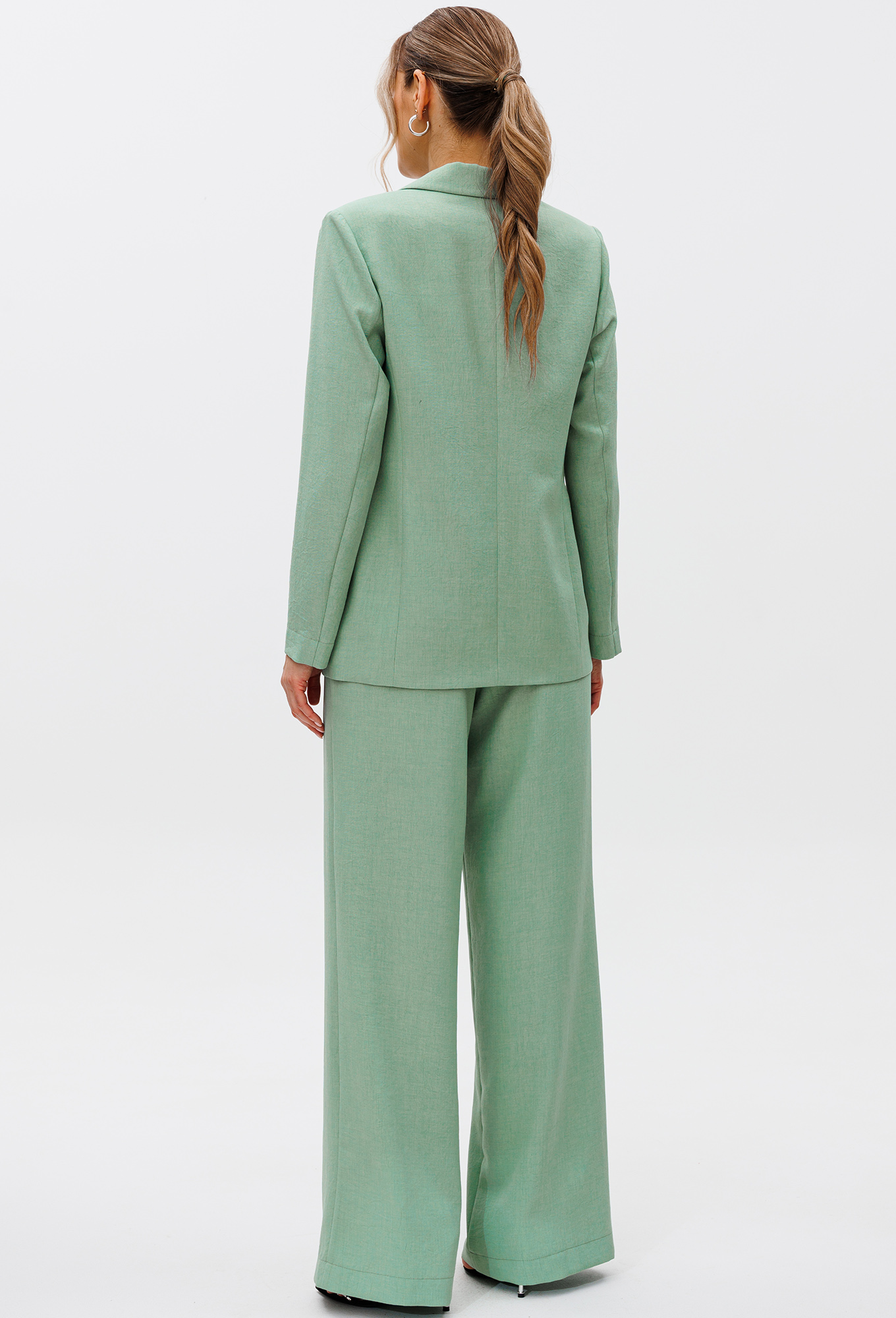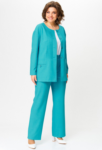 Модель: Гизарт 5204 мята Рост: 17..показать0 см (девушка на фото ростом 170см) Сезон: Весна-Лето Тип ткани: Полиэстер 62%, вискоза 32%, спандекс 6%Костюм состоит из жакета, топа и брюк. Жакет полуприлегающего силуэта с однобортной застежкой на две петли и пуговицы и воротником пиджачного типа. Борт закругленный. Перед с талиевой вытачкой и настрочными клапанами. Спинка с рельефом и средним швом. Рукав втачной двухшовный.Топ слегка приталенный на широких бретелях. Перед с рельефами, спинка со средним швом. Брюки расширенные книзу с притачным поясом. По передней и задней частям брюк вытачки. По правому переду жакета выполнена декоративная печать. Фурнитура может быть изменена с сохранением художественного образа.