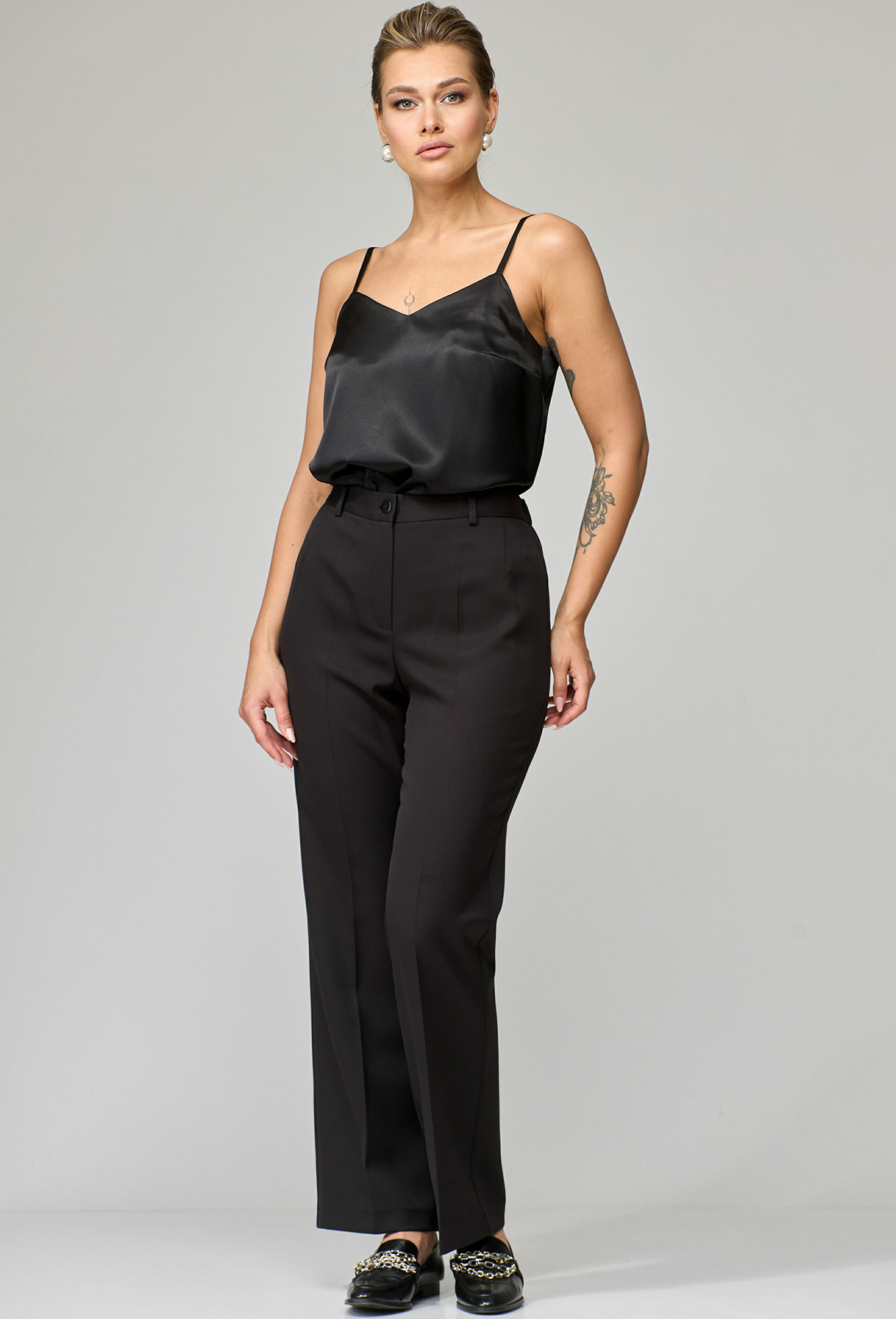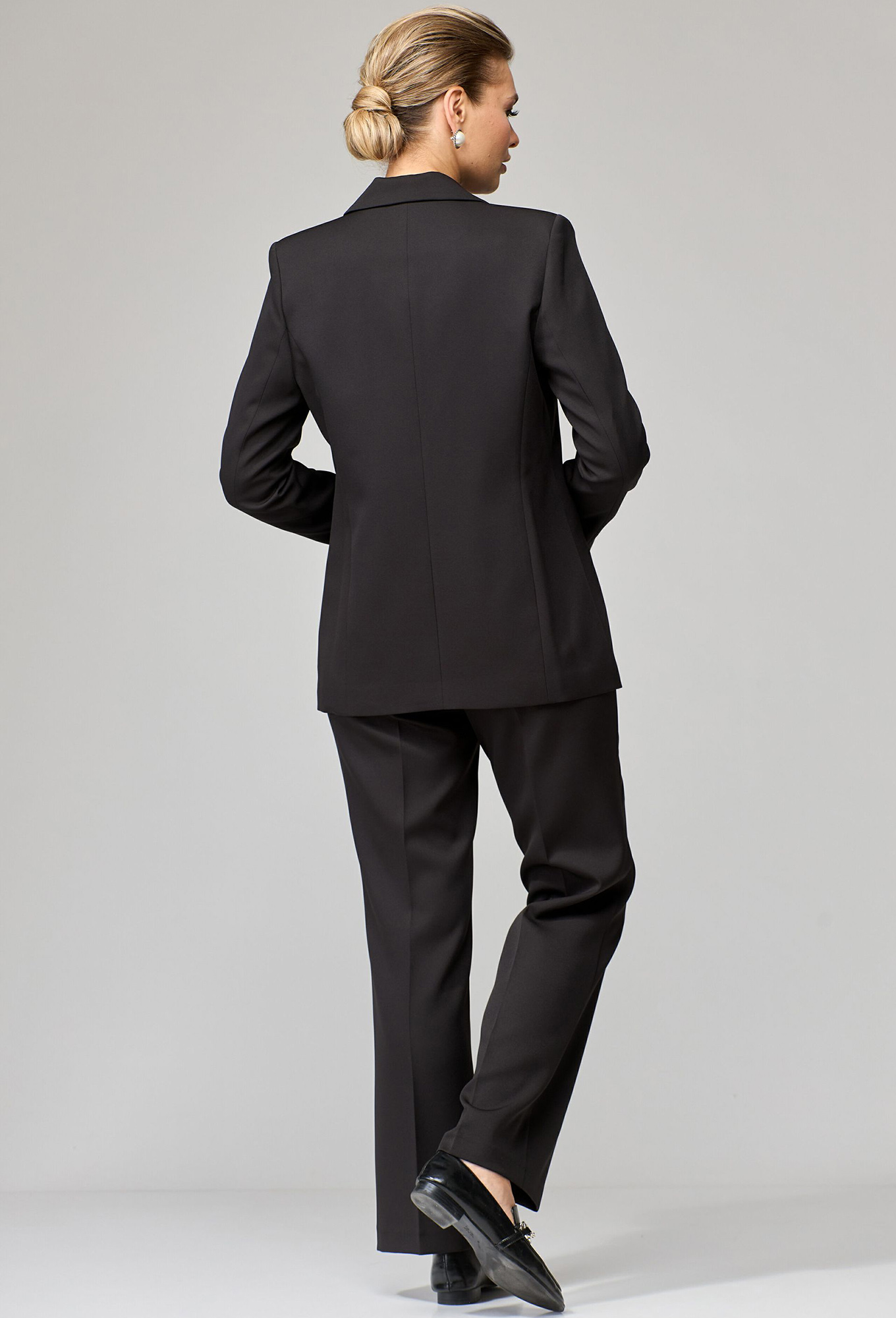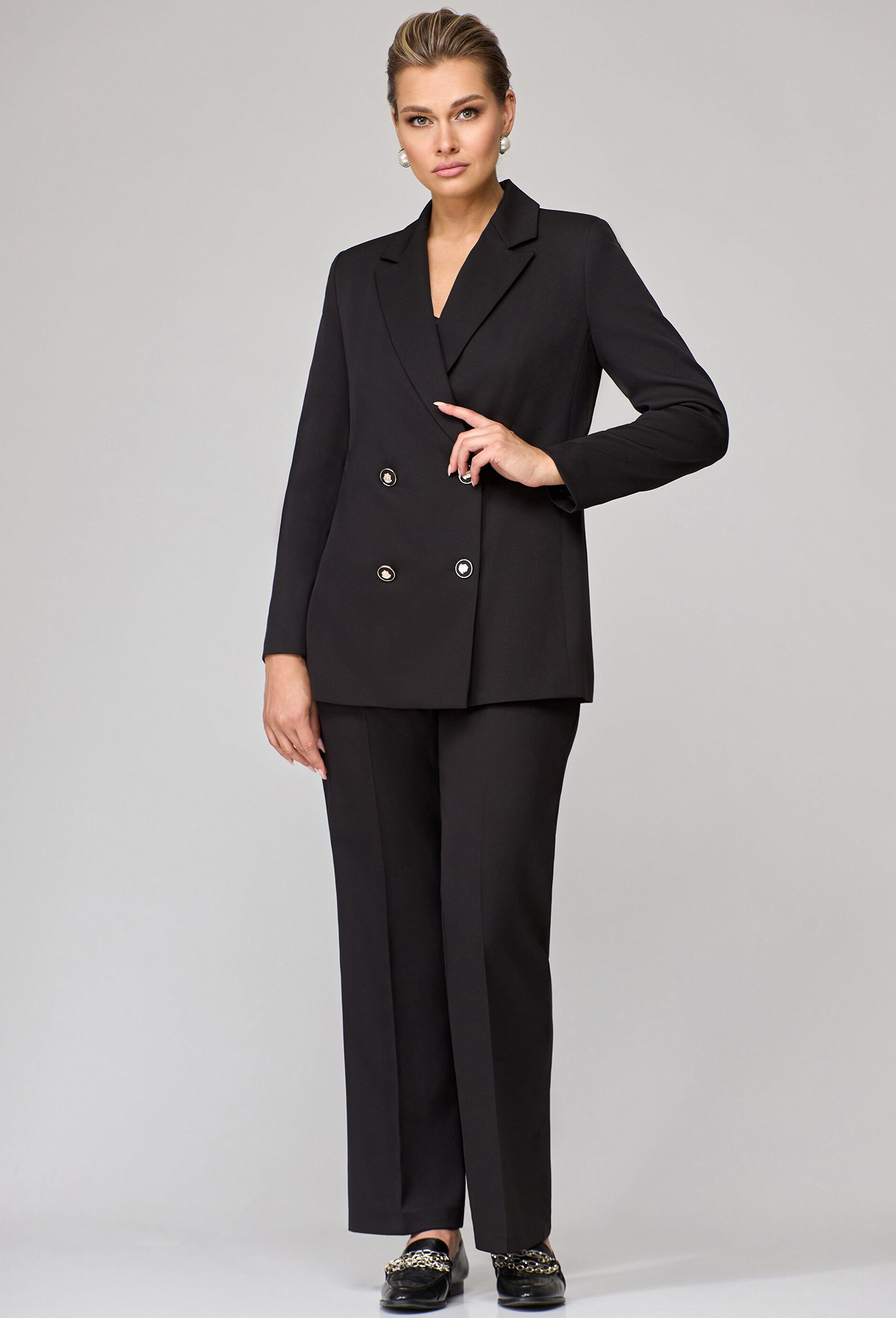 Модель: Гизарт 7551 чёрный Рост: ..показать164 см (девушка на фото ростом 170см) Сезон: Круглогодичный Тип ткани: Полиэстер 97%, спандекс 3%Комплект состоит из жакета и брюк. Жакет свободного силуэта, с двубортной с застежкой на четыре пуговицы. Полочки с отрезными бочками, с нагрудной вытачкой из горловины закрытой лацканом. Спинка со средним швом и двумя отрезными бочками. Рукав двухшовный втачной. Жакет на подкладке. Брюки прямые к низу. Верх брюк на поясе со шлевками. Застежка гульфик на молнии. Фурнитура может быть изменена.