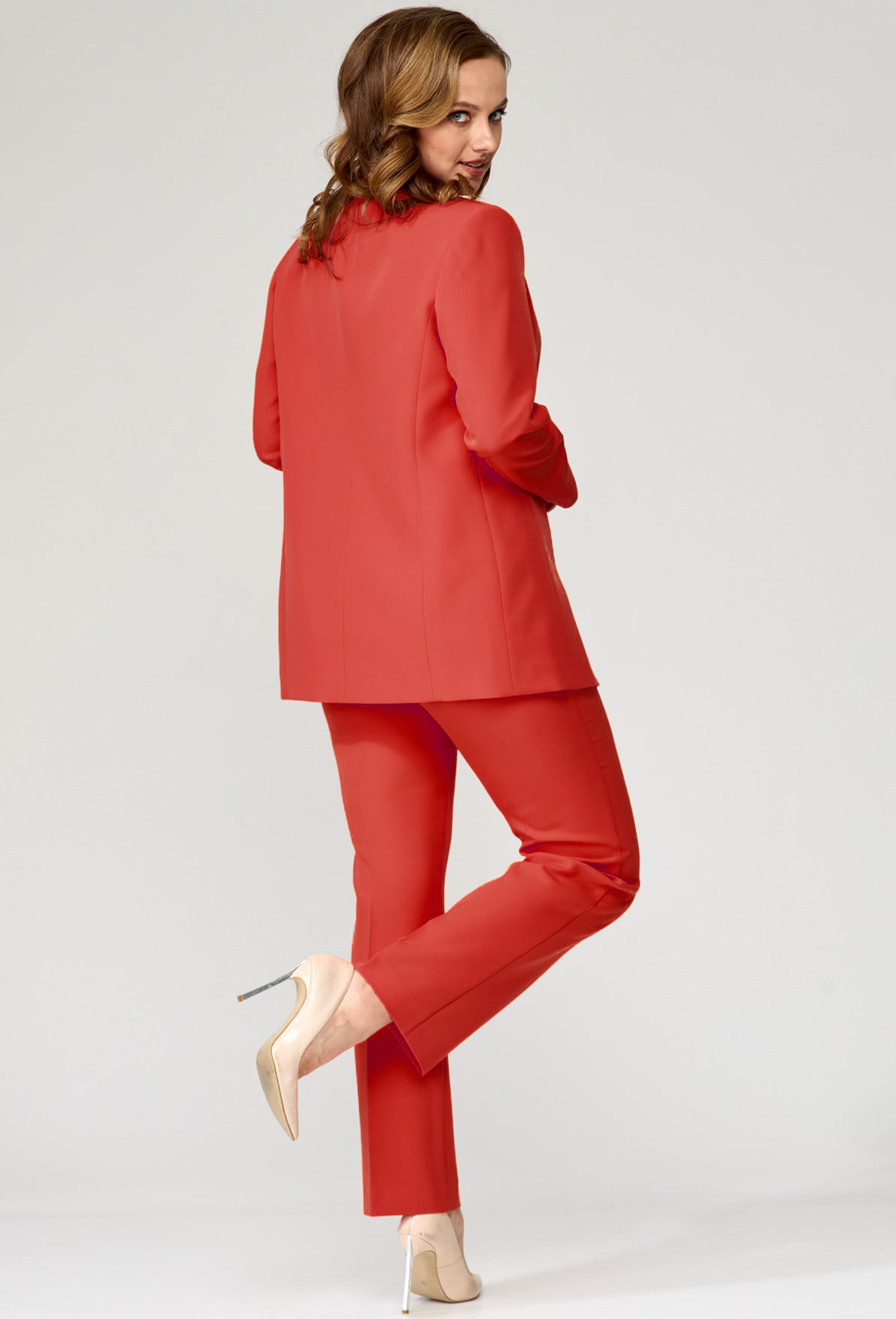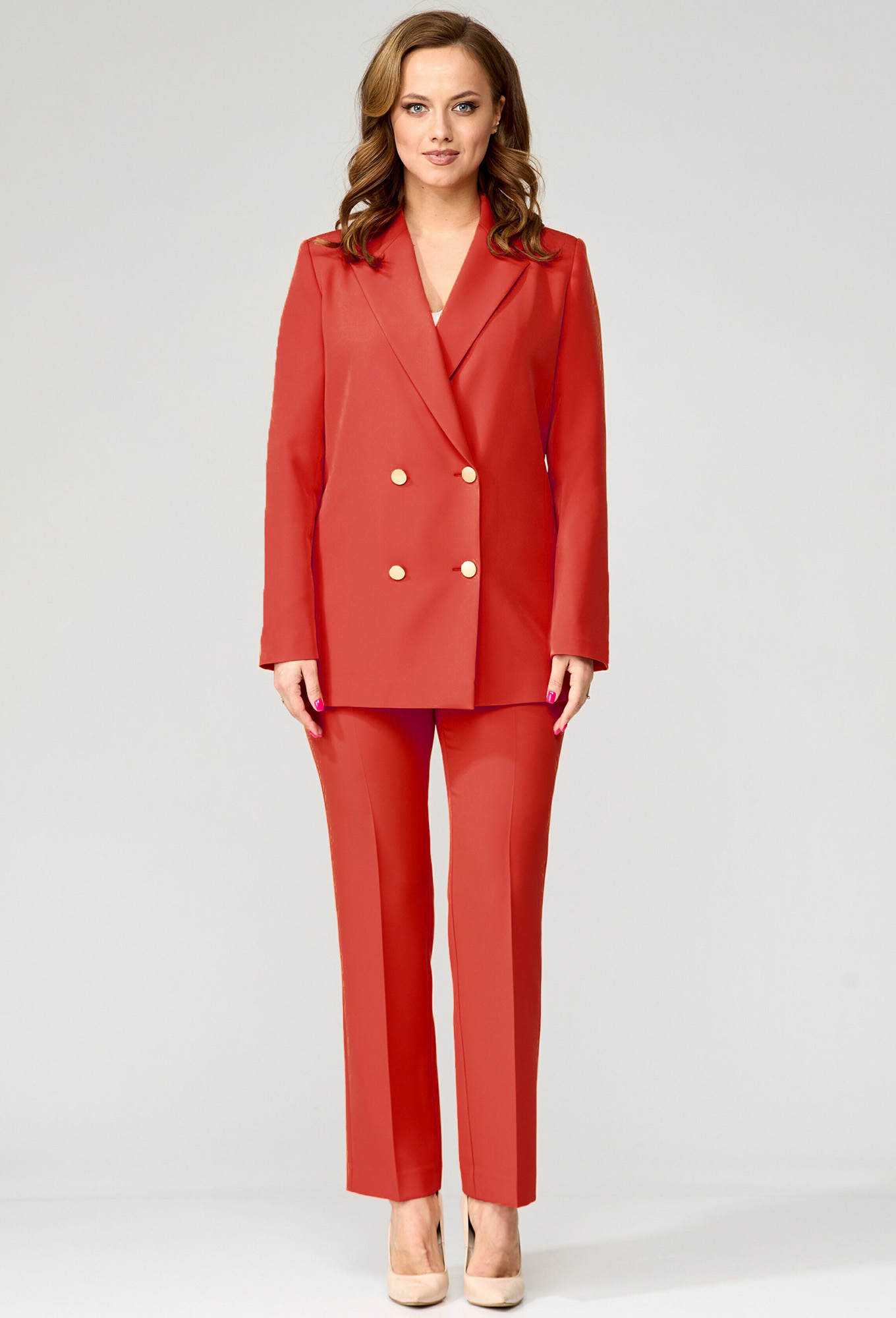 Модель: Гизарт 7551 терракотовый ..показатьРост: 164 см (девушка на фото ростом 170см) Сезон: Круглогодичный Тип ткани: Полиэстер 97%, спандекс 3%Комплект состоит из жакета и брюк. Жакет свободного силуэта, с двубортной с застежкой на четыре пуговицы. Полочки с отрезными бочками, с нагрудной вытачкой из горловины закрытой лацканом. Спинка со средним швом и двумя отрезными бочками. Рукав двухшовный втачной. Жакет на подкладке. Брюки прямые к низу. Верх брюк на поясе со шлевками. Застежка гульфик на молнии. Фурнитура может быть изменена.