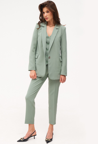 Модель: Кавари 8002.6 олива Рост:..показать 170 см (девушка на фото ростом 170см) Сезон: Круглогодичный Тип ткани: Вискоза 60%, ПЭ 35%, спандекс 5%Шикарный 2-х предметный костюм, состоящий из жакета и брюк. Универсальный женский жакет на подкладке прямого силуэта. Перед с центральной застежкой на одну пуговицу, с карманами и с клапанами в шве. Воротник стояче-отложной втачной с отворотом лацкана. Рукав двухшовный, втачной. Брюки базовые со стрелками. Изделие имеет комфортную среднююю посадку. Брюки на притачном поясе со шлёвками. Спереди боковые функциональные карманы, сзади имитация прорезных карманов с листочкой.