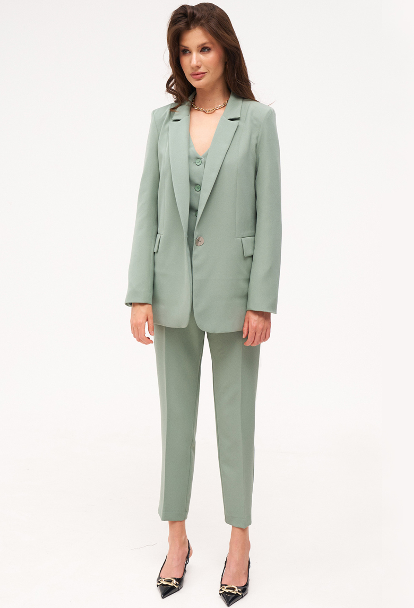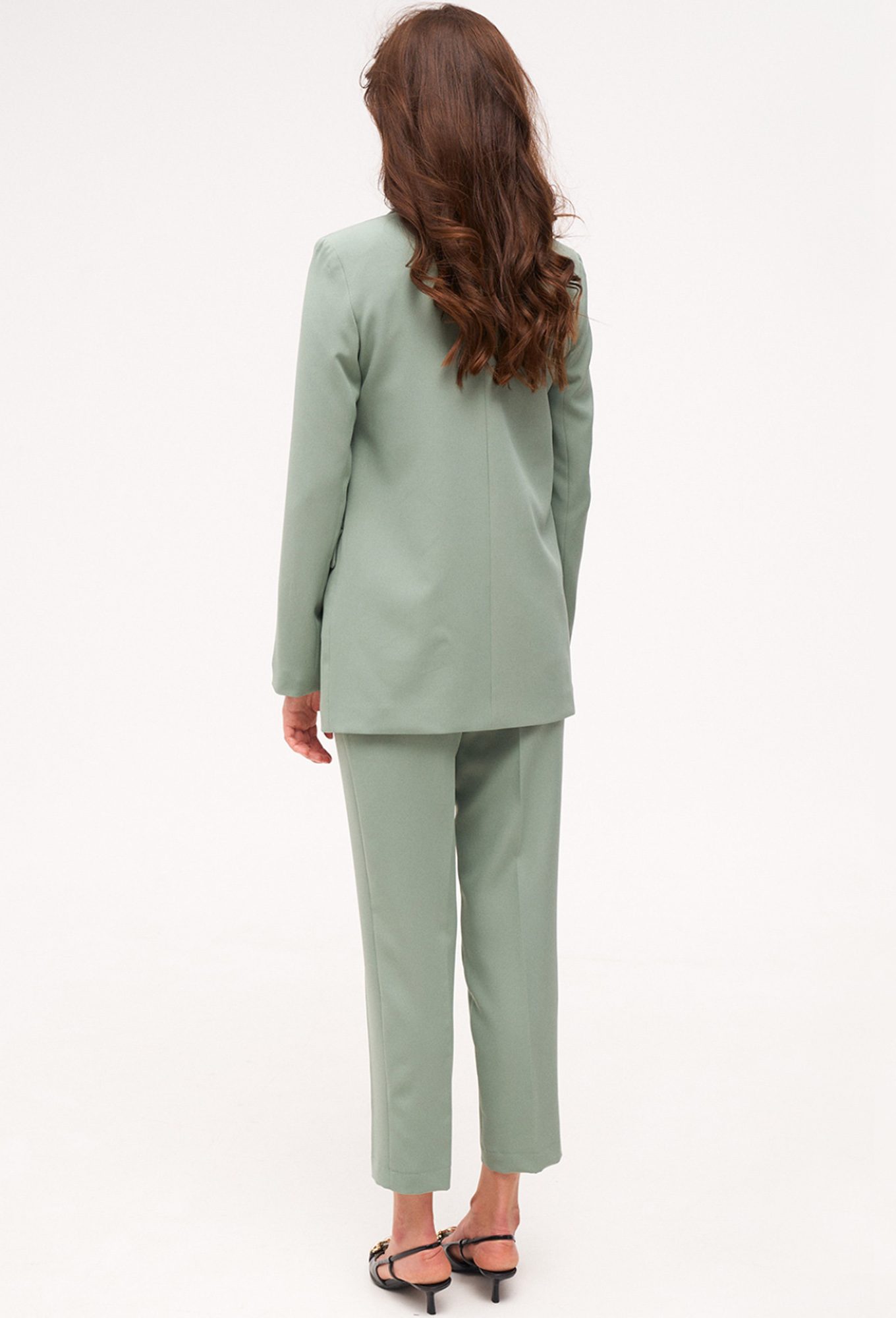 Длина жакета - 73 см, длина рукава – 63 см, длина брюк по боковому шву с поясом - 98 см. 170 см (девушка на фото ростом 170см)