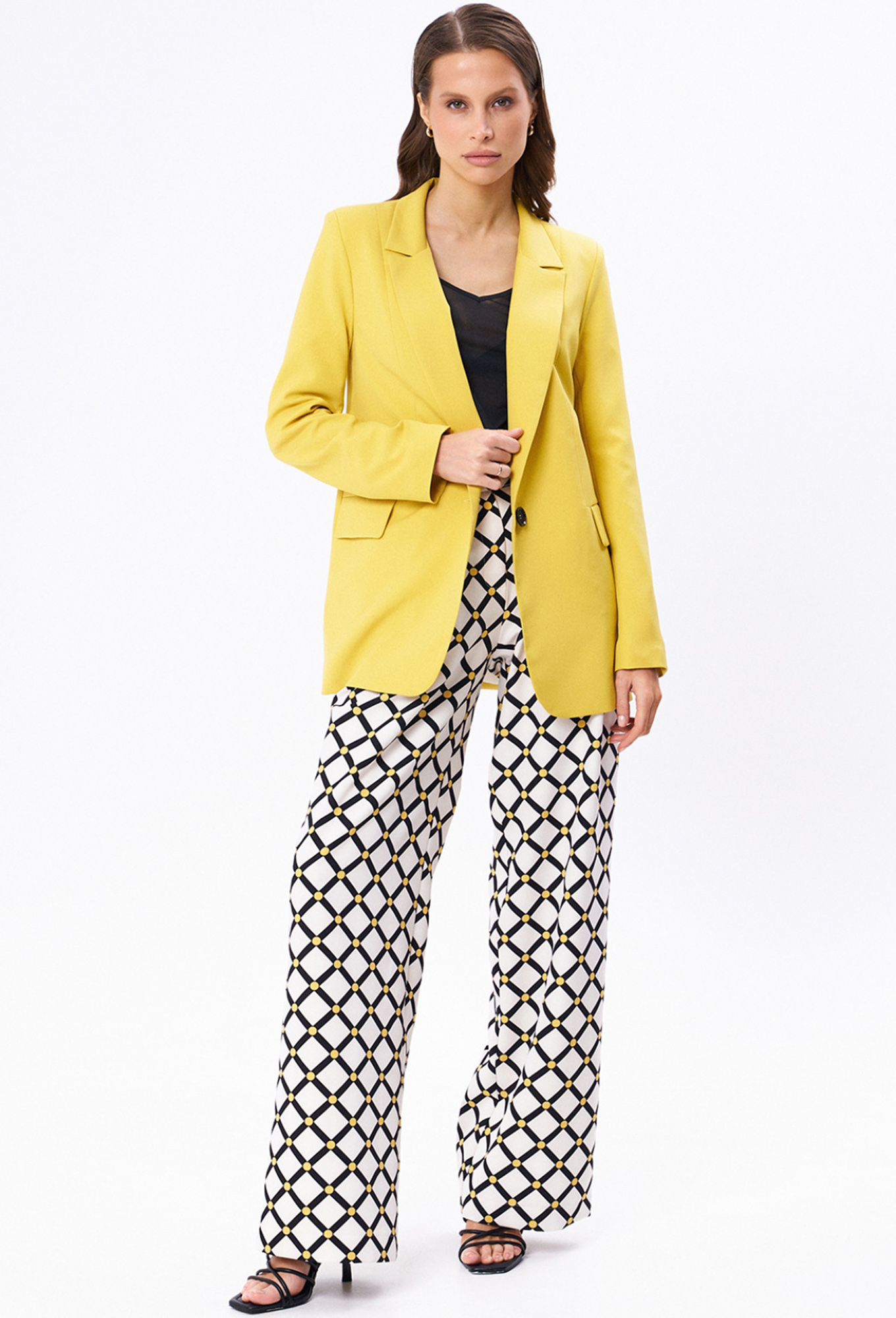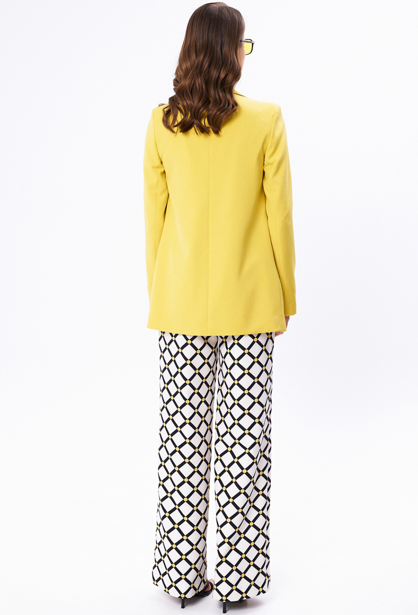 Модель: Кавари 8029 горчица Рост:..показать 170 см (девушка на фото ростом 170см) Сезон: Круглогодичный Тип ткани: Жакет- вискоза 60%, полиэстер 35%, спандекс 5%Брюки - полиэстер 100%Шикарный 2-х предметный комплект, состоящий из жакета и брюк. Универсальный женский жакет на подкладке прямого силуэта. Перед с центральной застежкой на одну пуговицу, с карманами и с клапанами в шве. Воротник стояче-отложной втачной с отворотом лацкана. Рукав двухшовный, втачной. Брюки женские большого объема, прямого силуэта, вида «палаццо». На передних половинках брюк по линии талии заложены две односторонние складки, направленные в сторону бокового шва и функциональные карманы с отрезным бочком. На задних половинках находятся по две талиевые вытачки. Пояс отрезной, притачной, с уступом на правой передней половинке. На поясе шлевки. Верхний край пояса расположен на естественной линии талии. Застежка брюк – классический гульфик. Застежка пояса на две пуговицы и две петли. Длина брюк в пол.Длина жакета по переду - 78см, длина рукава – 64см. Длина брюк по боковому - 114см. 170 см (девушка на фото ростом 170см)