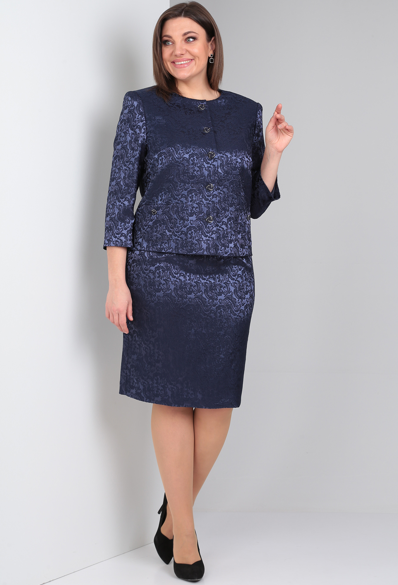 Модель: Леди Лайн 525 т.синий Рос..показатьт: 164 см (рост модели на фото 170см) Сезон: Круглогодичный Тип ткани: 49% полиэфир, 48% вискоза, 3% спандексКостюм 2х предметный. Состоит из жакета и юбки. _x000D_