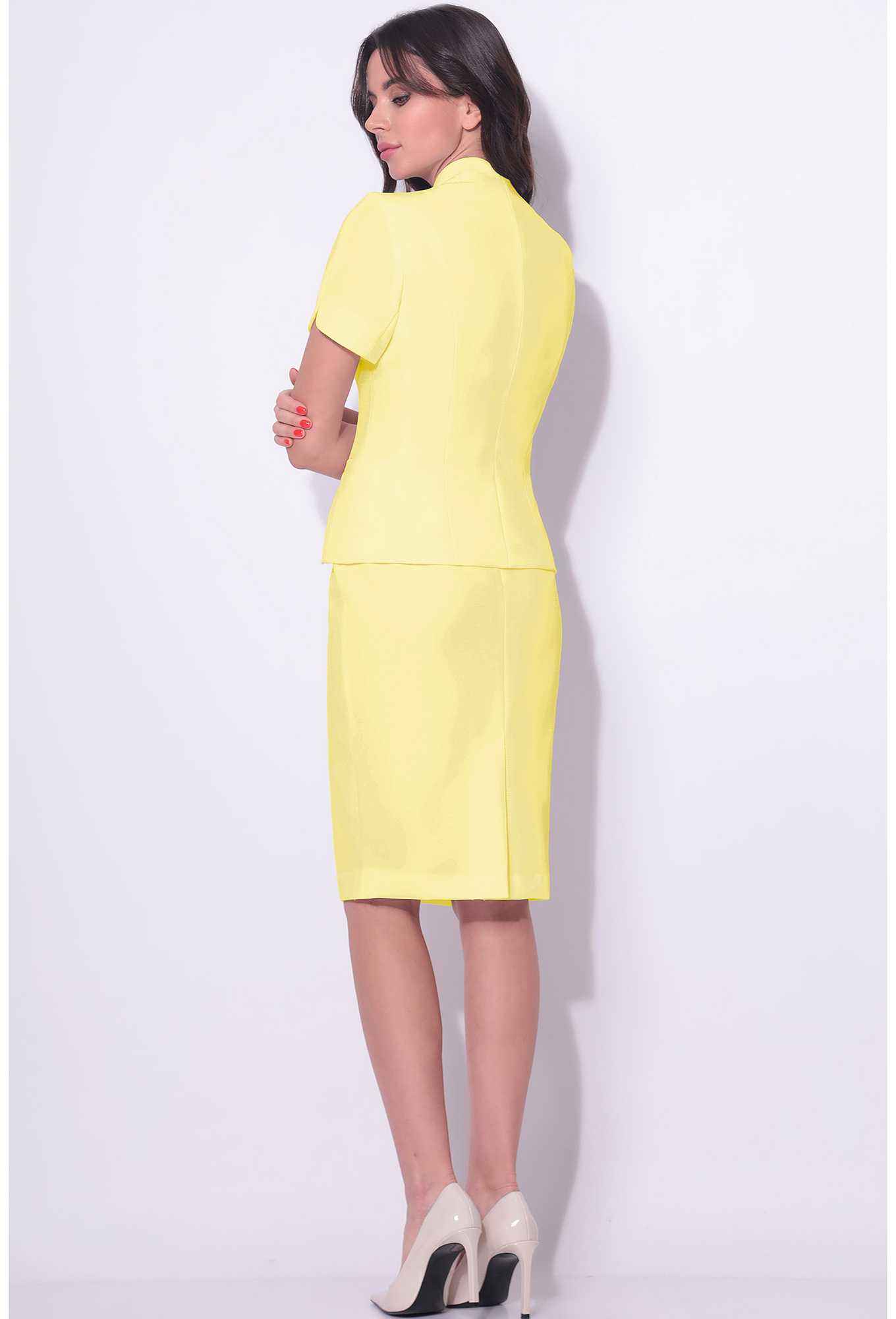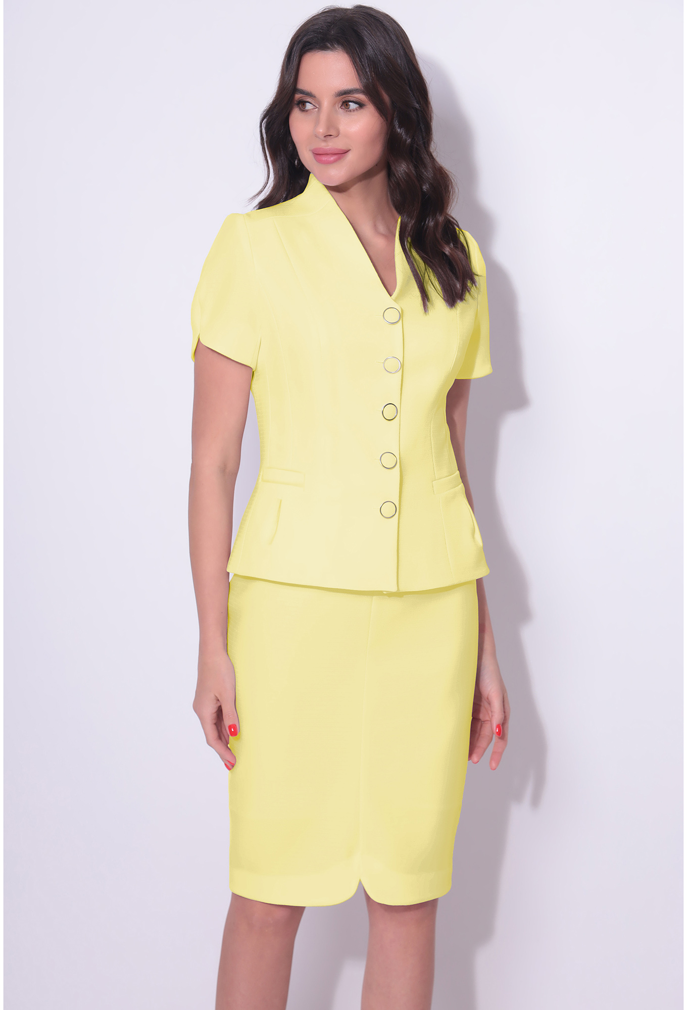 Модель: Лената 22534 желтый Рост:..показать 164-170 см (рост модели на фото 170см) Сезон: Круглогодичный Тип ткани: 72% ПЭ, 22% вискоза, 6% спандексКлассический женский комплект в деловом стиле. Жакет имеет функциональный прорезной карман. Рукав двухшовный короткий. Низ рукава фигурный. Юбка, зауженная к низу с рельефами по переднему и заднему полотнищу. Низ юбки фигурный, юбка на обтачке, с потайной молнией сзади со шлицой. Жакет и юбка на подкладе.