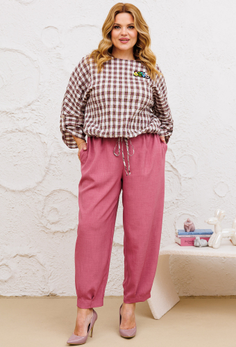 Длина блузы по спинке 68 +/-1 см, длина рукава 60 +/-1 см. Длина брюк по боковому шву 92 см, шаговому — 60 см. >Рост: 164 см (девушка на фото ростом 170 см) Сезон: Весна-Лето Тип ткани: Блуза — 100% полиэстер, Брюки-кюлоты — 91% полиэстер, 9% спандекс