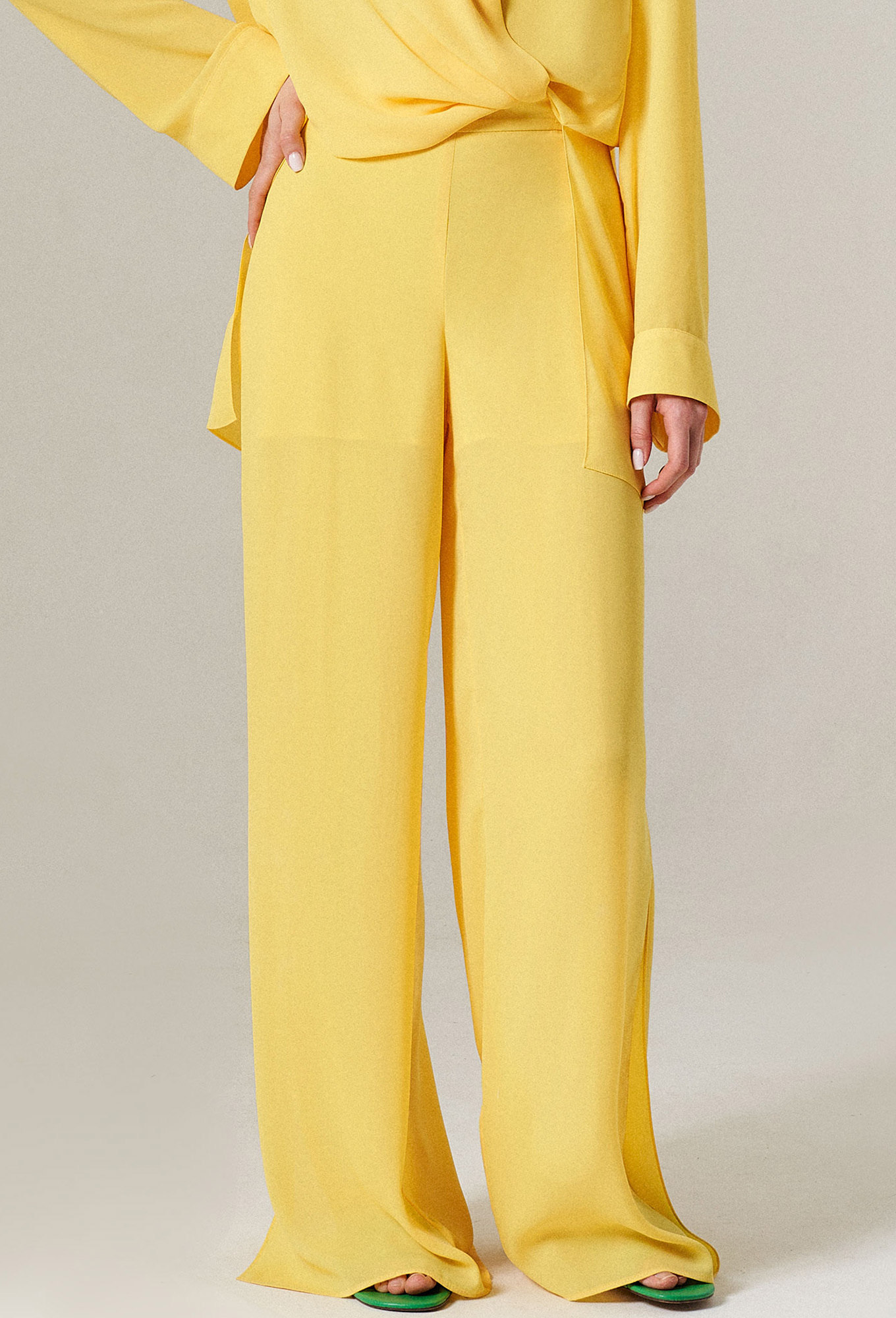 Модель: Панда 149360 жёлтый Рост:..показать 164 см (девушка на фото ростом 170см) Сезон: Весна-Лето Тип ткани: Брюки- Полиэстер 100%Подкладка- Вискоза 100%Широкие длинные брюки свободного кроя. С разрезом по бокам.