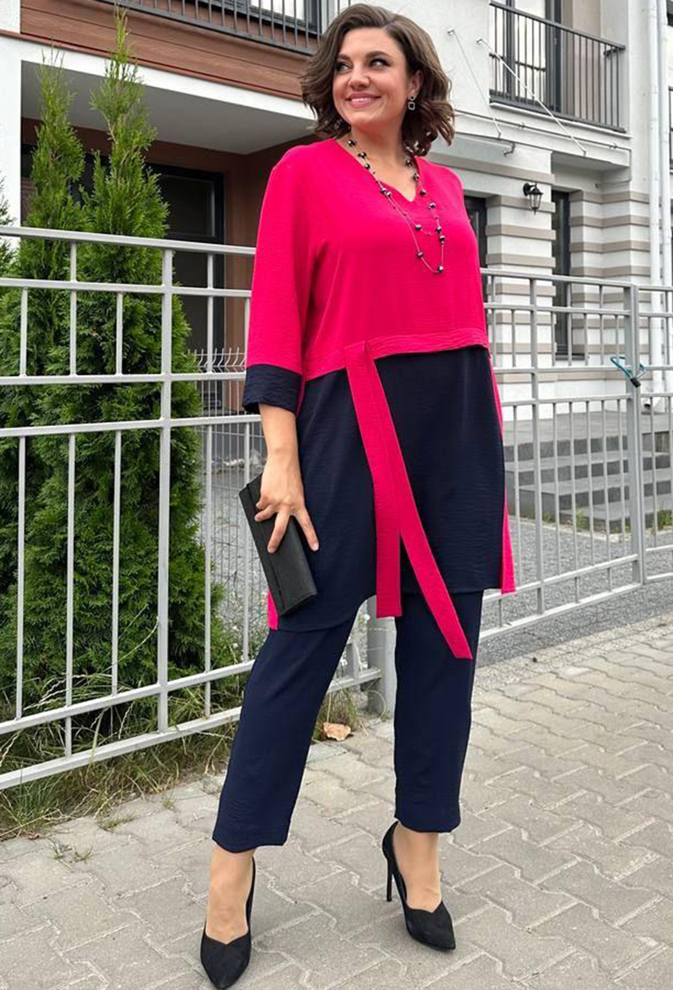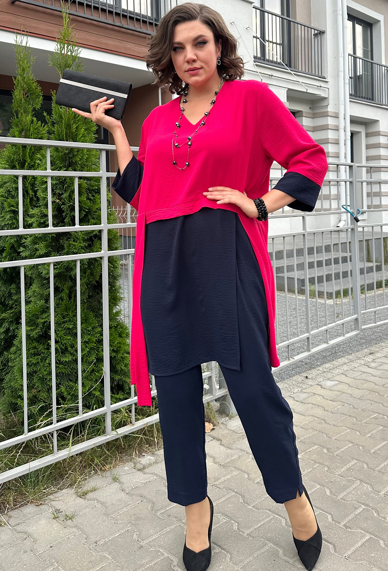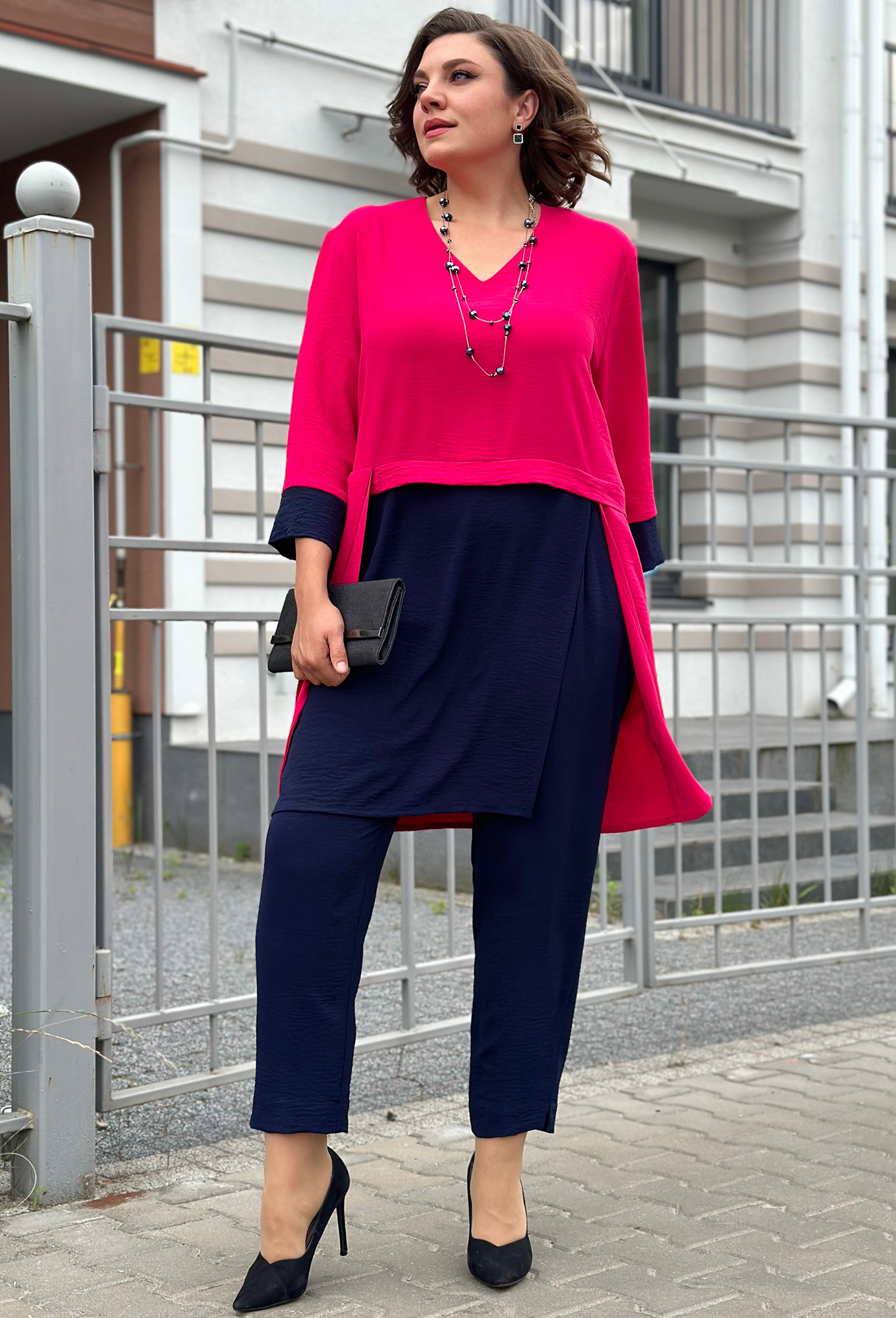 Модель: Рунелла 1586 фуксия Рост:..показать 164 см (девушка на фото ростом 170см) Сезон: Весна-Лето Тип ткани: 95% Полиэстер, 5% ЭластанКостюм брючный женский с туникой для праздника выполнен из Легкой струящийся ткани. Длина туники по спинке 95 см. Свободный силуэт, спущено плечо. Брюки на резинке слегка заужены к низу с карманами. Длина брюк 100 см. 164 см (девушка на фото ростом 170см)