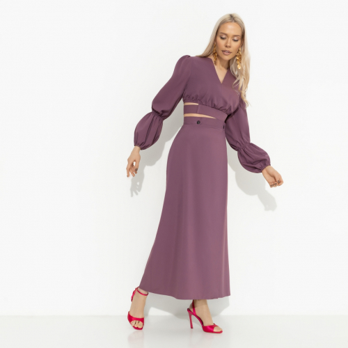 Как выглядит вечер свободной девушки после загруженного рабочего дня с четырьмя зумами и двумя совещаниями?! Нет, не на диване. В баре с подружками в костюме CHARUTTI. Энергичных девушек должно быть видно издалека. Комплект состоит из укороченного топа и юбки. Топ с акцентным декором в виде пояса с удлиненными лентами и вшитой резинкой на рукавах. Юбка на запах с глубоким вырезом. Застегивается на пуговицы, по спинке вшита резинка. Посадка на талии.