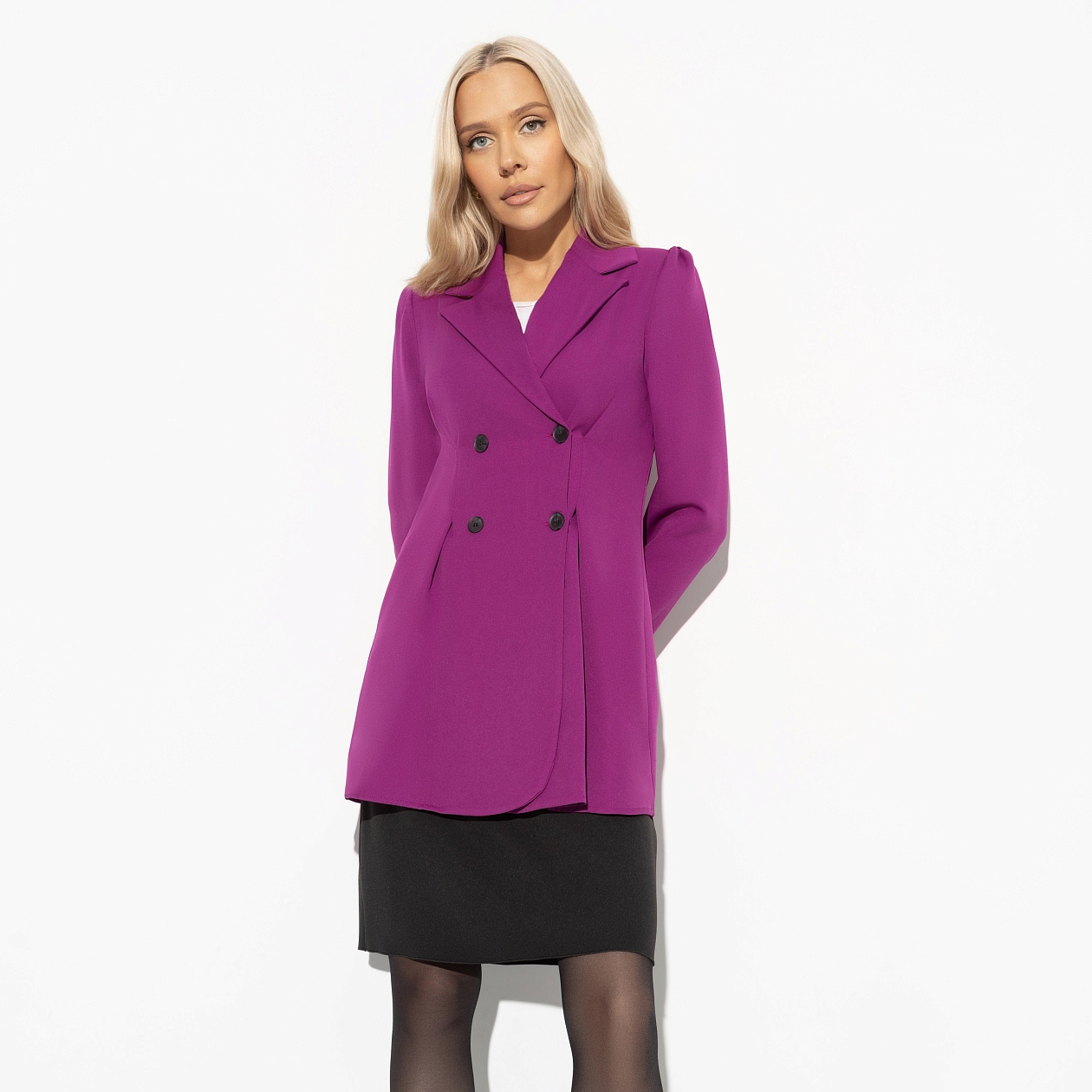 Ты помнишь, как ребенком сидела за столом у мамы на работе. Она деловая, в жакете и юбке задумчиво и серьезно разговаривала по телефону, а потом что-то долго писала. Образ прекрасной деловой женщины врезался тебе в память, как эталон. Комплект состоит из удлиненного двубортного жакета с лацканами и юбки. Жакет приталенный, есть подплечники. Юбка комфортно сидит на талии за счет резинки.