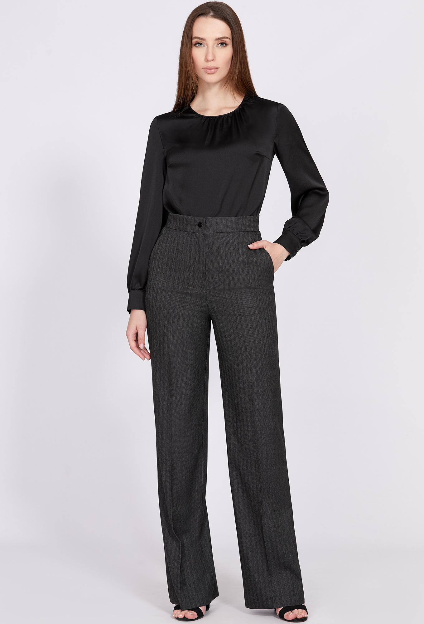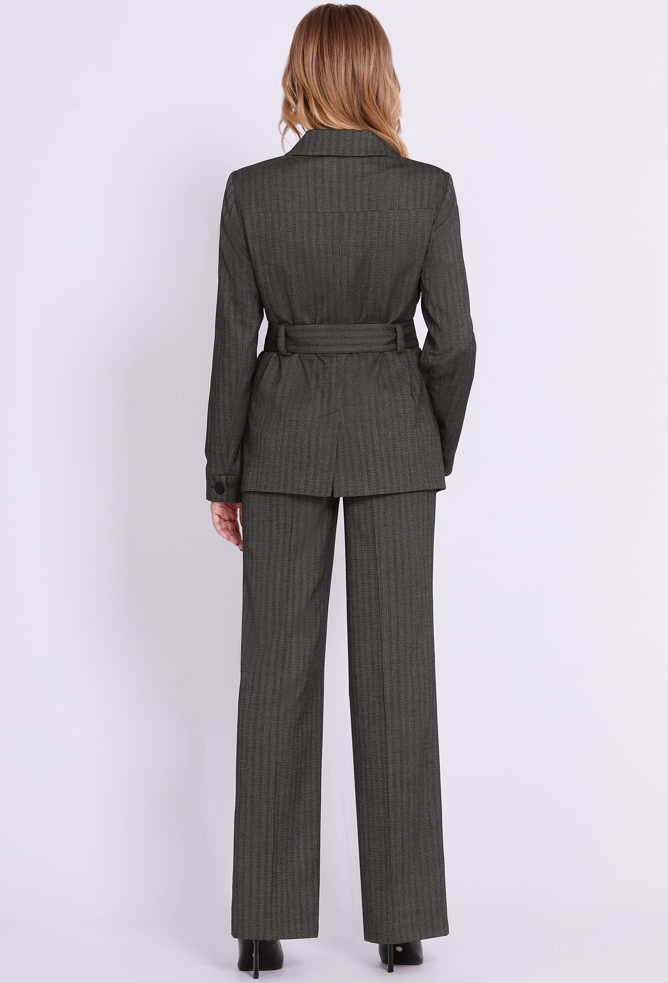 Модель: Солеи 3810/3860 т.серый Р..показатьост: 170 см (девушка на фото 170см) Сезон: Круглогодичный Тип ткани: 65% полиэстер, 32% вискоза, 3% эластанЖакет прямого силуэта с центрально-боковой застёжкой на петли-пуговицы. Перед с четырьмя настрочными карманами. Спинка с кокеткой, средним швом, заканчивающимся шлицей и шлёвками в области талии. Рукава втачные двухшовные с манжетами с отделочной пуговицей. Воротник отложной с цельновыкроенной стойкой. На подкладке. Дополняется поясом с пряжкой из основной ткани.Свободные брюки со стрелками. Изделие с застёжкой на молнию и петлю-пуговицу.