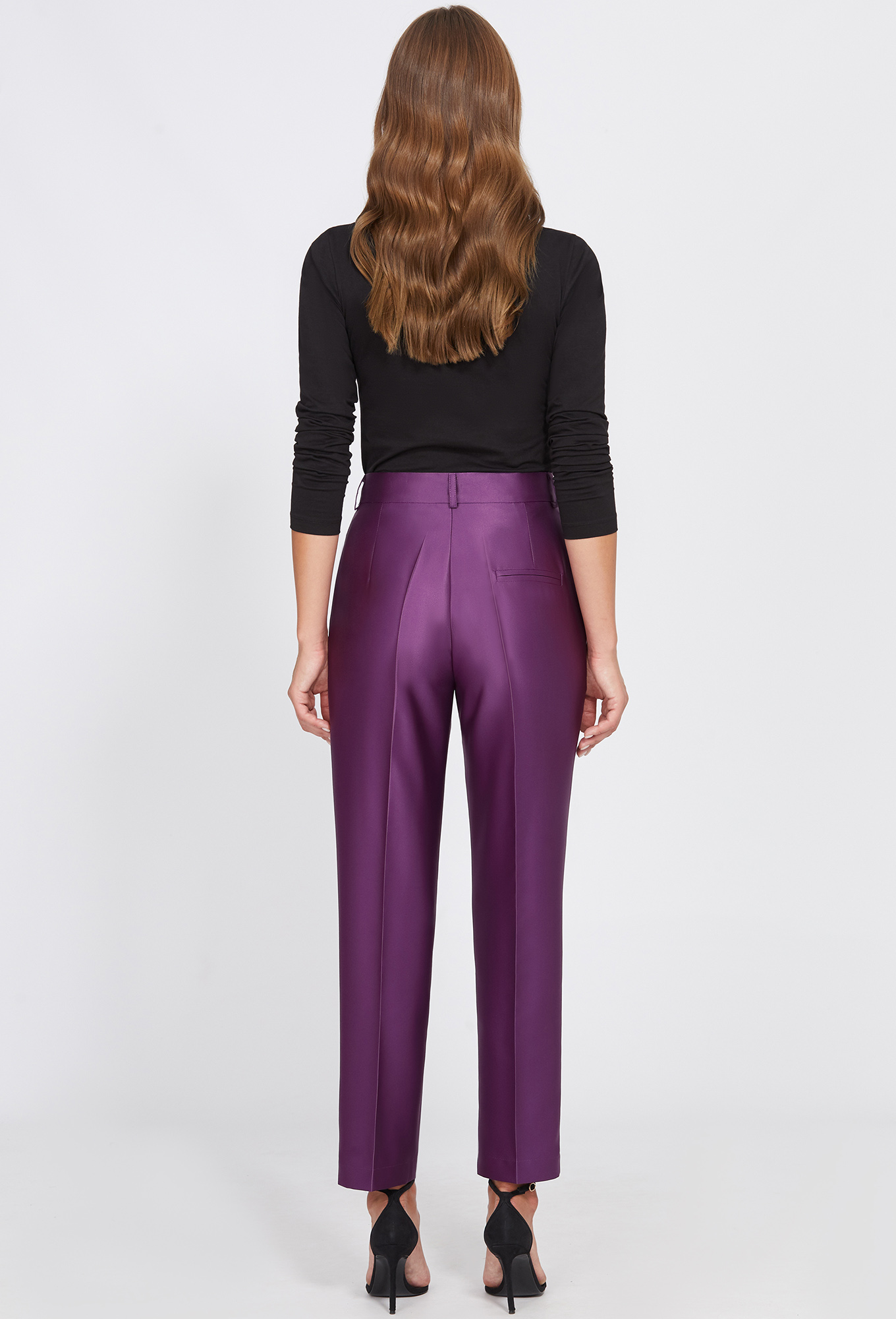 Брюки на притачном поясе со шлёвками, с застёжкой на молнию и две петли-пуговицы. Передние части с косыми карманами. Задняя правая часть с карманом-обманкой с рамками.