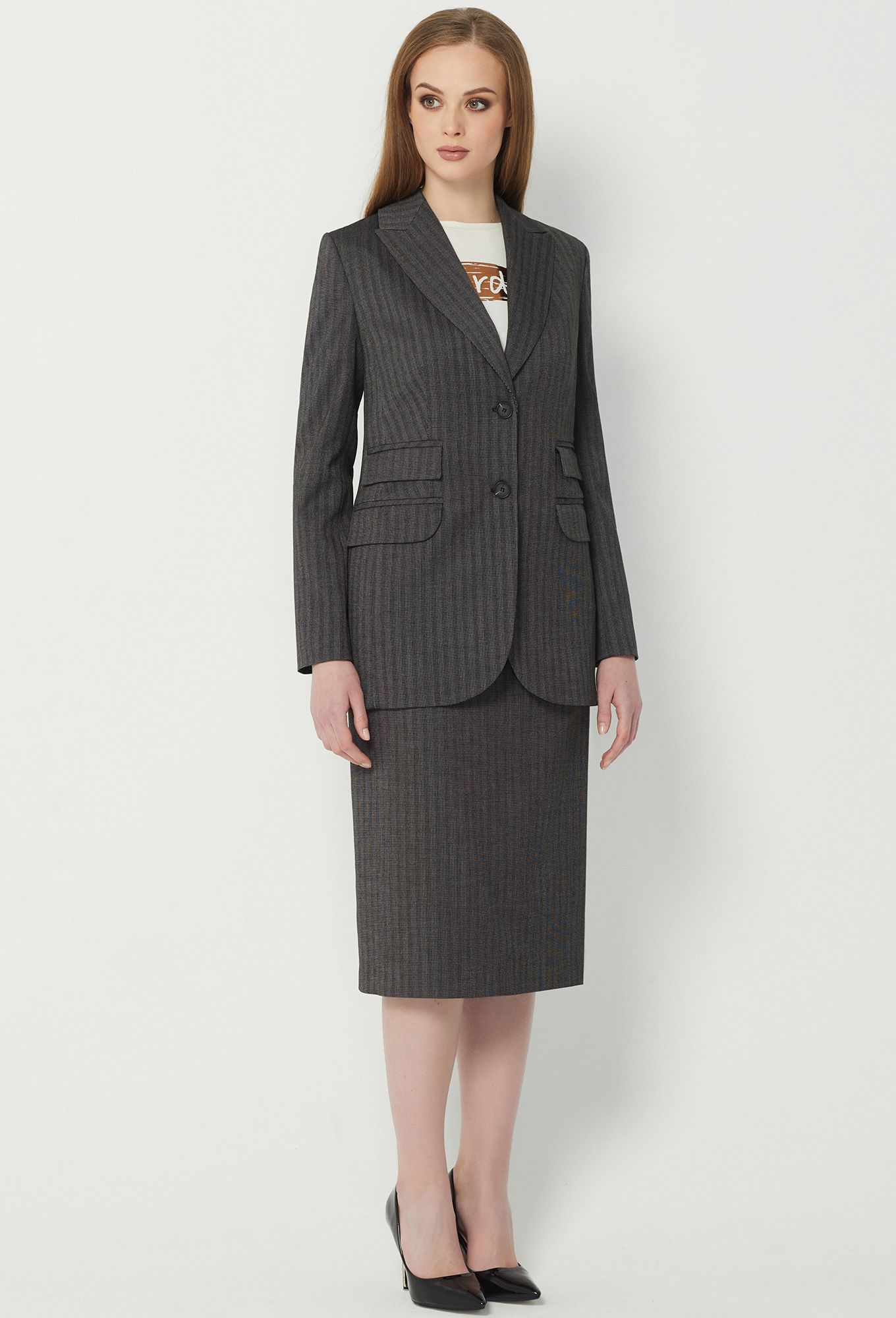 Модель: Солеи 4260 т.серый Рост: ..показать170 см (девушка на фото 170см) Сезон: всесезонный Тип ткани: 65% полиэстер, 32% вискоза, 3% эластанЮбка-миди на притачном поясе. Передняя половинка с косыми карманами. В среднем шве задней половинки обработаны потайная молния и шлица. На подкладке.