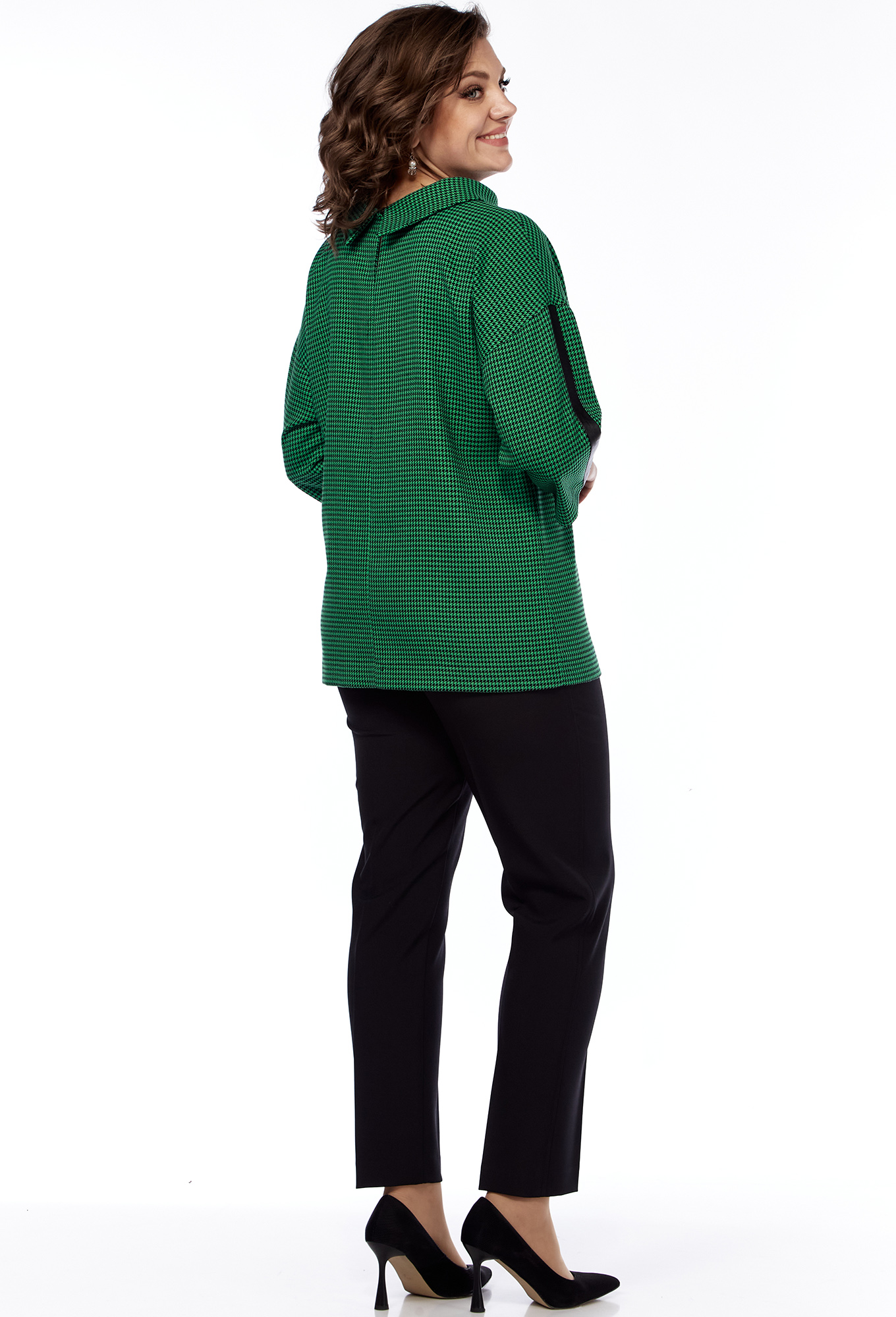 Модель: СВТ 609 зелёный Рост: 164..показать см (рост модели на фото 170см) Сезон: Осень-Зима Тип ткани: Полиэстер 55%, вискоза 40%, эластан 5%Комплект Блузка и брюки. Блузка: длина 65 см, длина рукава ¾ 42 см (летучая мышь). Отделка кожа. Застежка на пуговку по спинке.