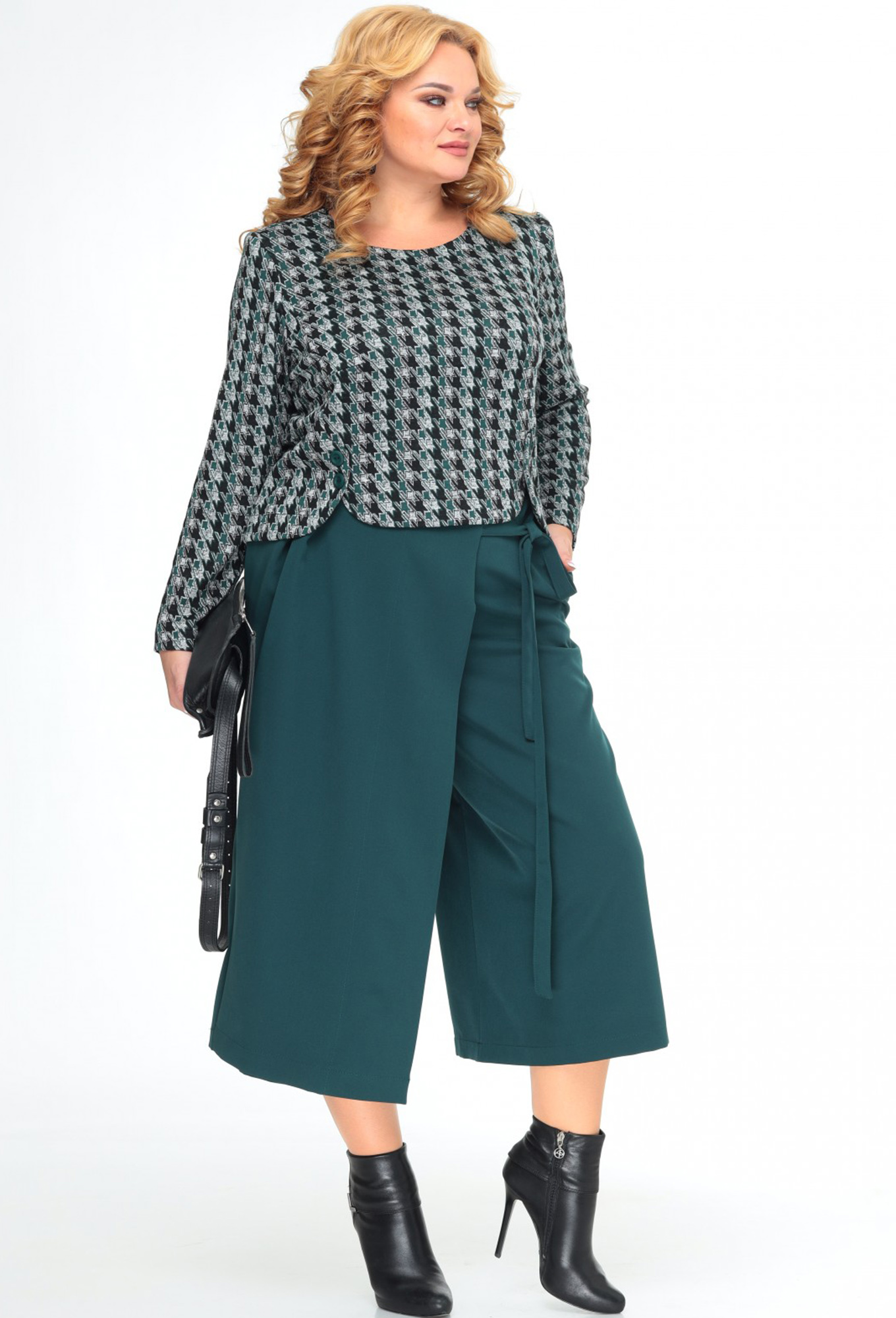 Модель: Таита Плюс 1939 серо-изумрудное..показатьi> Рост: 164 см (рост модели на фото 172см) Сезон: Осень-Зима Тип ткани: Блуза- 73% полиэстер, 24% вискоза, 3% спандексКюлоты- 95% полиэстер, 5% спандексСтильный, удобный, практичный женский комплект. Состоит из джемпера и юбки-брюк(кюлоты). Джемпер из ткани хорошего качества на трикотажной основе. Длина джемпера по спинке от плеча - 59 см, по переду 55 см. Рукав - 61 см. Модные юбка -брюки(кюлоты) длинной 84 см, по переду брюк планка, переходящая в длинный пояс.i>