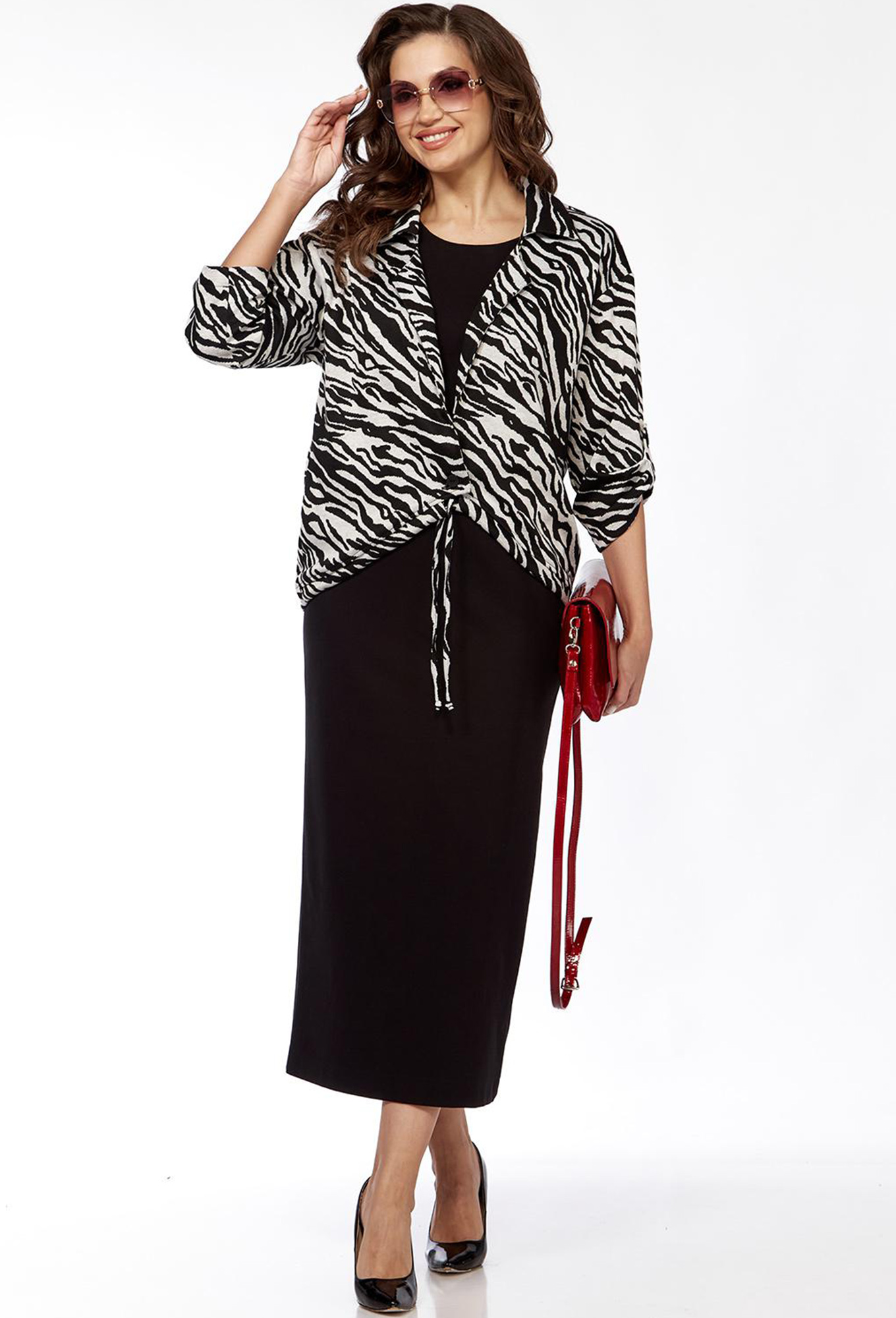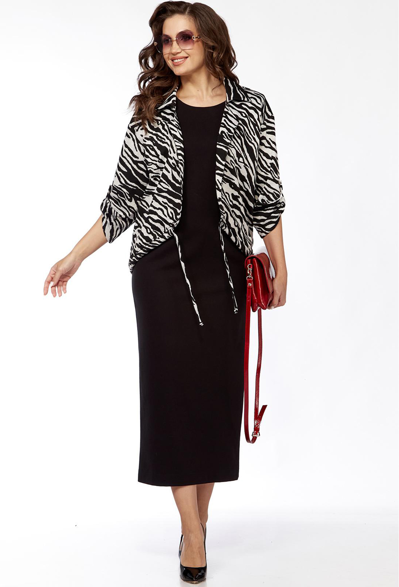 Модель: Таита плюс 2425/1 черно-белый..показать Рост: 164 см (рост модели на фото 172см) Сезон: Осень-Зима Тип ткани: верх - 95% вискоза, 5% эластанниз - 96% пэ, 4% эластанОчень элегантный женский комплект , из трикотажной ткани хорошего качества. Состоит из платья и жакета .Платье полуприлегающего силуэта с коротким рукавом, сзади разрез. Длина платья от плеча по спинке 130 см. Обращаем ваше внимание на жакет , очень интересного дизайна , с воротником и свободными лацканами , с низу на одной пуговице. Снизу жакета пришивная кулиска, в которую вставлена шнуровка с этой же ткани. По спинке жакет удлиненный длина от плеча 67 см. Рукав на пате с пуговицей ,но можно носить и опущенным рукавом ,пата скрыта внутри рукава. Рукав 7/8 длины. Рост: 164 см (рост модели на фото 172см) Сезон: Осень-Зима Тип ткани: верх - 95% вискоза, 5% эластанниз - 96% пэ, 4% эластан