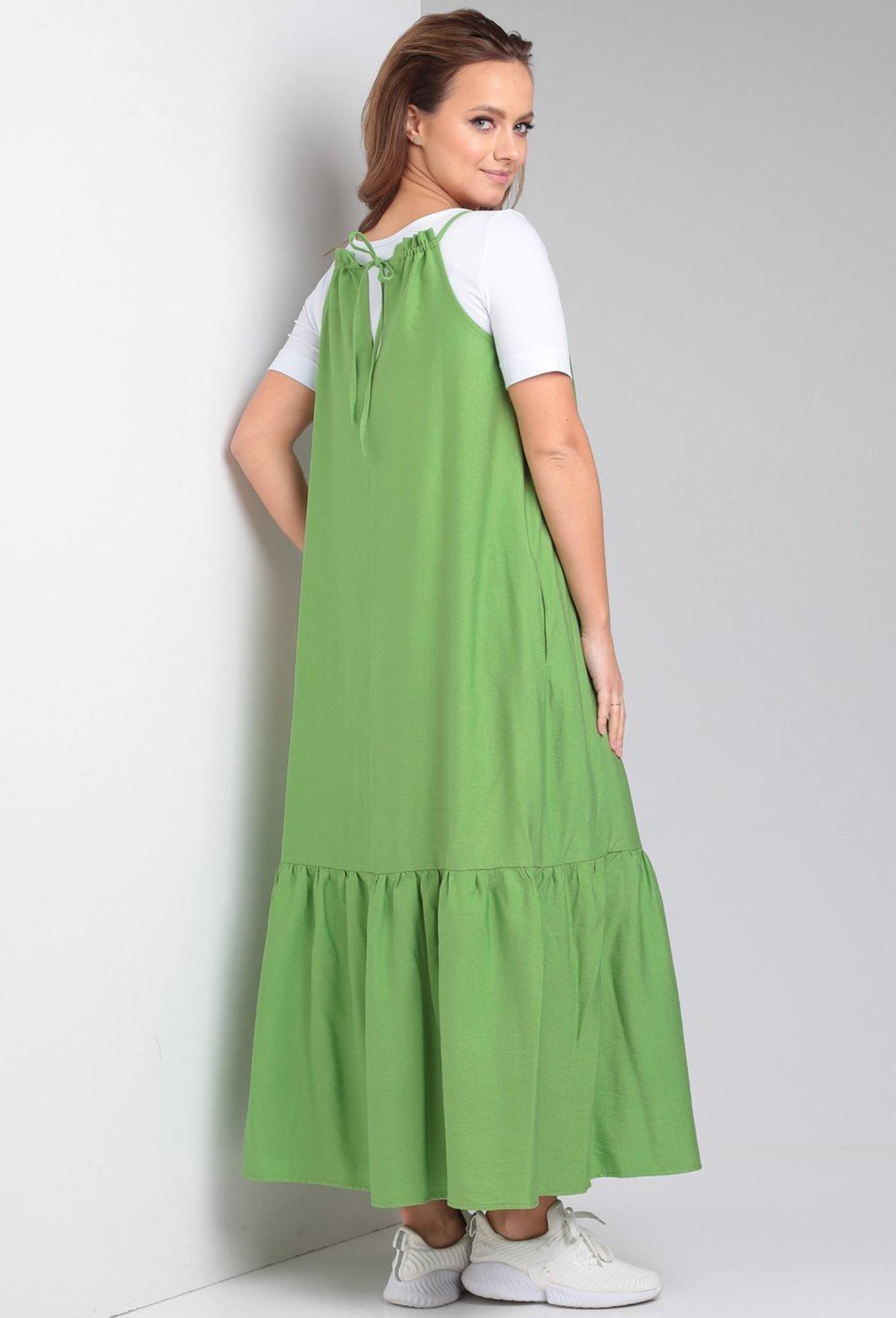 Модель: Твин 7802 салатовый Рост:..показать 164 см (девушка на фото ростом 170см) Сезон: Весна-Лето Тип ткани: Сарафан- вискоза 87%, нейлон 13%Майка- вискоза 100%Комплект женский двойка, состоит из сарафана и майки. Сарафан свободного покроя из однотонно-плательной ткани. Легкость, свободу и комфорт - именно эти ощущения вам доставит данная модель. Горловина переда и спинки на кулисе, присобрана шнуром из основной ткани. Спинка со средним швом. В боковых швах функциональные карманы. _x000D_