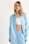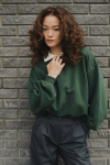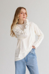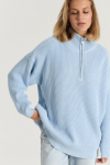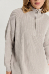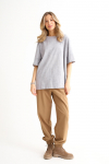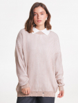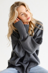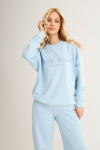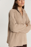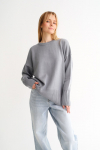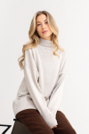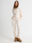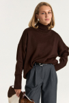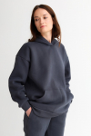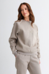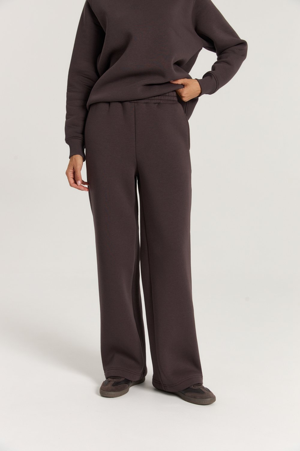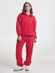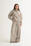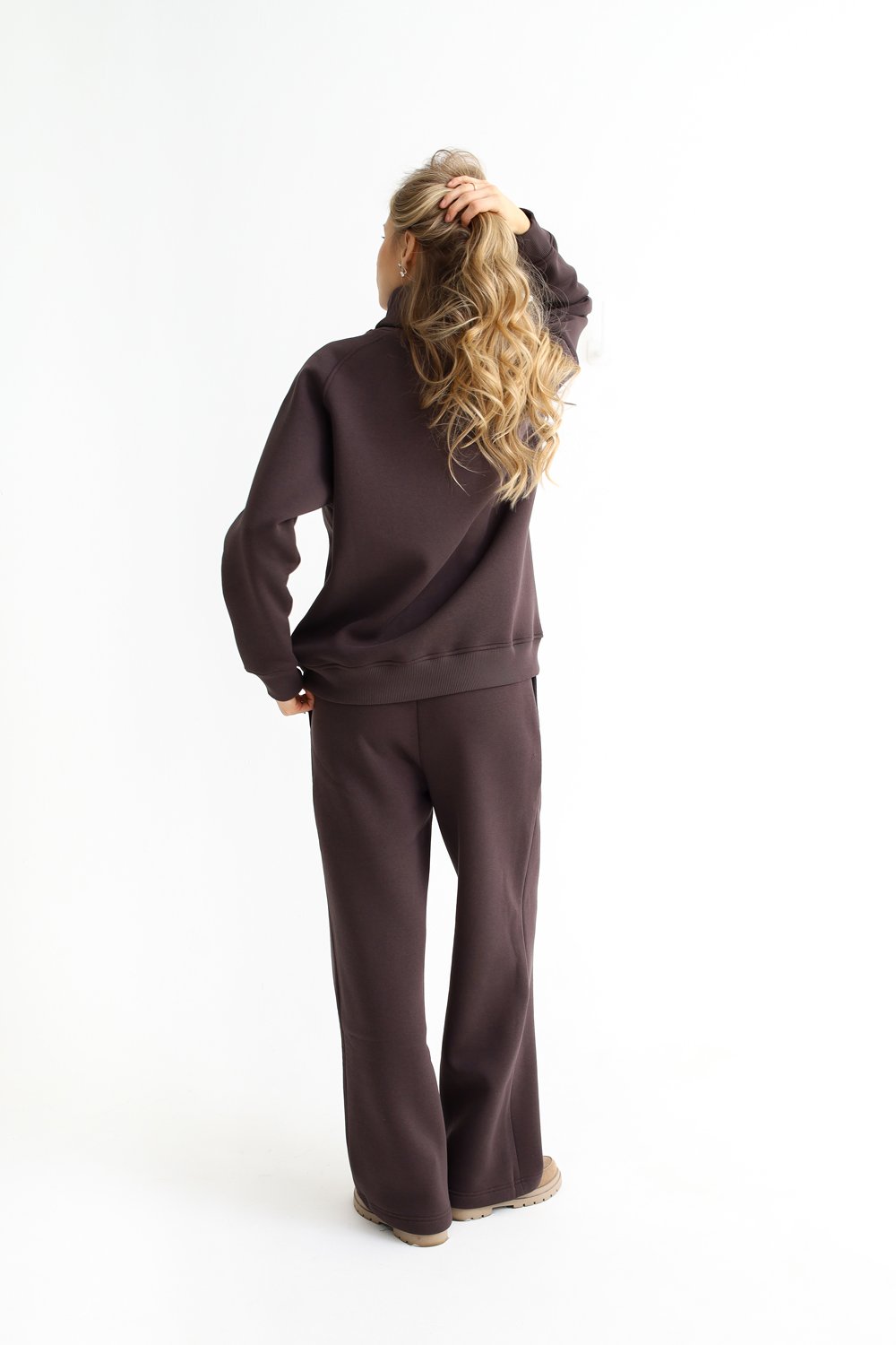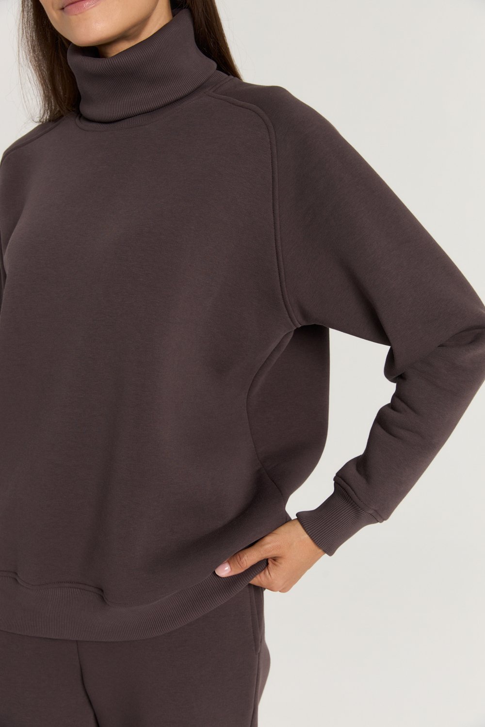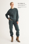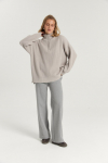 Костюм из футера с начесом. Свободный силуэт. Объемный свитшот с рукавом реглан-погон и высоким воротником-стойкой. Брюки трубы, прямые от бедра.