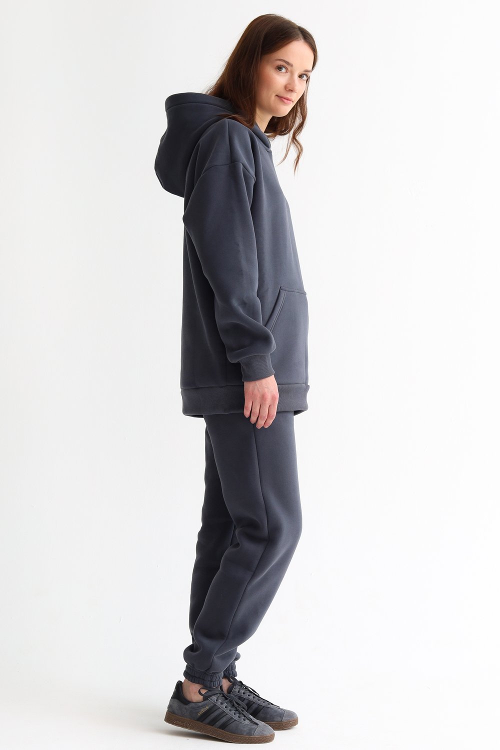**Особенность футера с начёсом - пилингование изнаночной стороны изделия и миграция ворсинок на тело и одежду при первом использовании, что является нормой для данного типа ткани.
