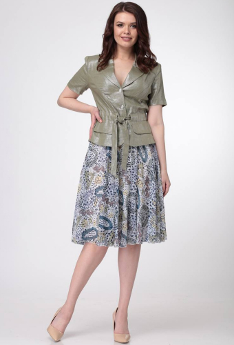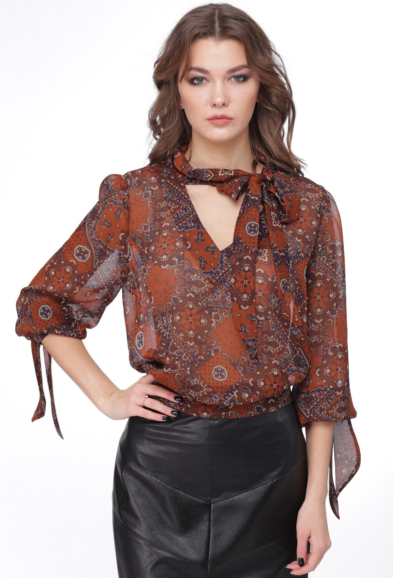 Модель: Верита 1163 коричневый Ро..показатьст: 164 см (девушка на фото ростом 170см) Сезон: Весна-Лето Тип ткани: Полиэстер 100%Комплект женский состоящий из блузы и юбки. Блуза выполнена из шифоновой ткани без подкладки. Блуза свободного силуэта с V-образной горловиной, по низу планка. Длина рукава 3/4 по низу рукава манжет с декоративной завязкой. Блуза декорирована съемным бантом на шею. Юбка из декоративной кожи со вставками. Юбка на трикотажной подкладке. По спинке молния.