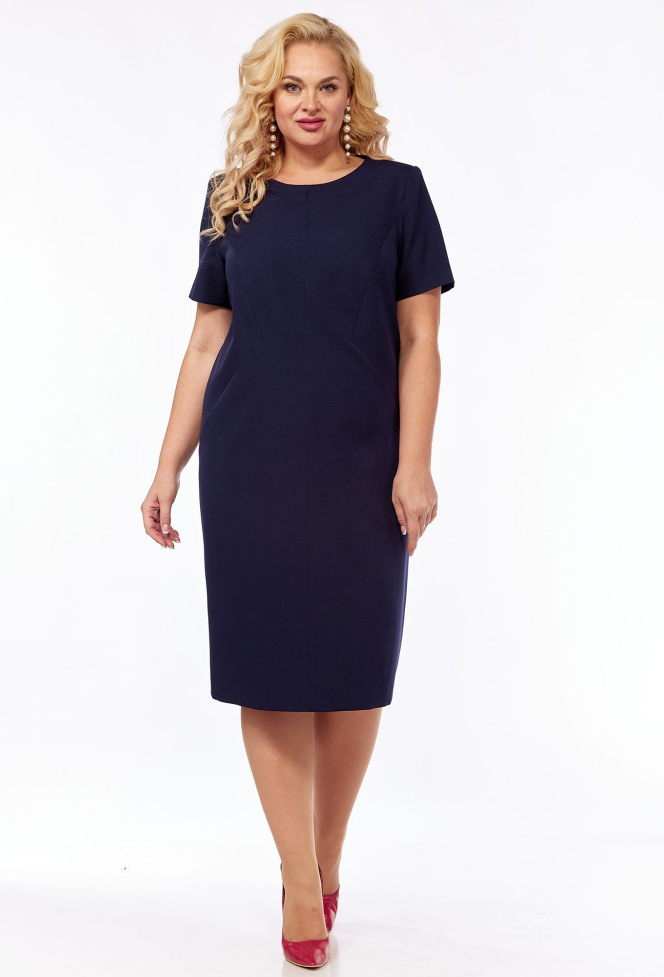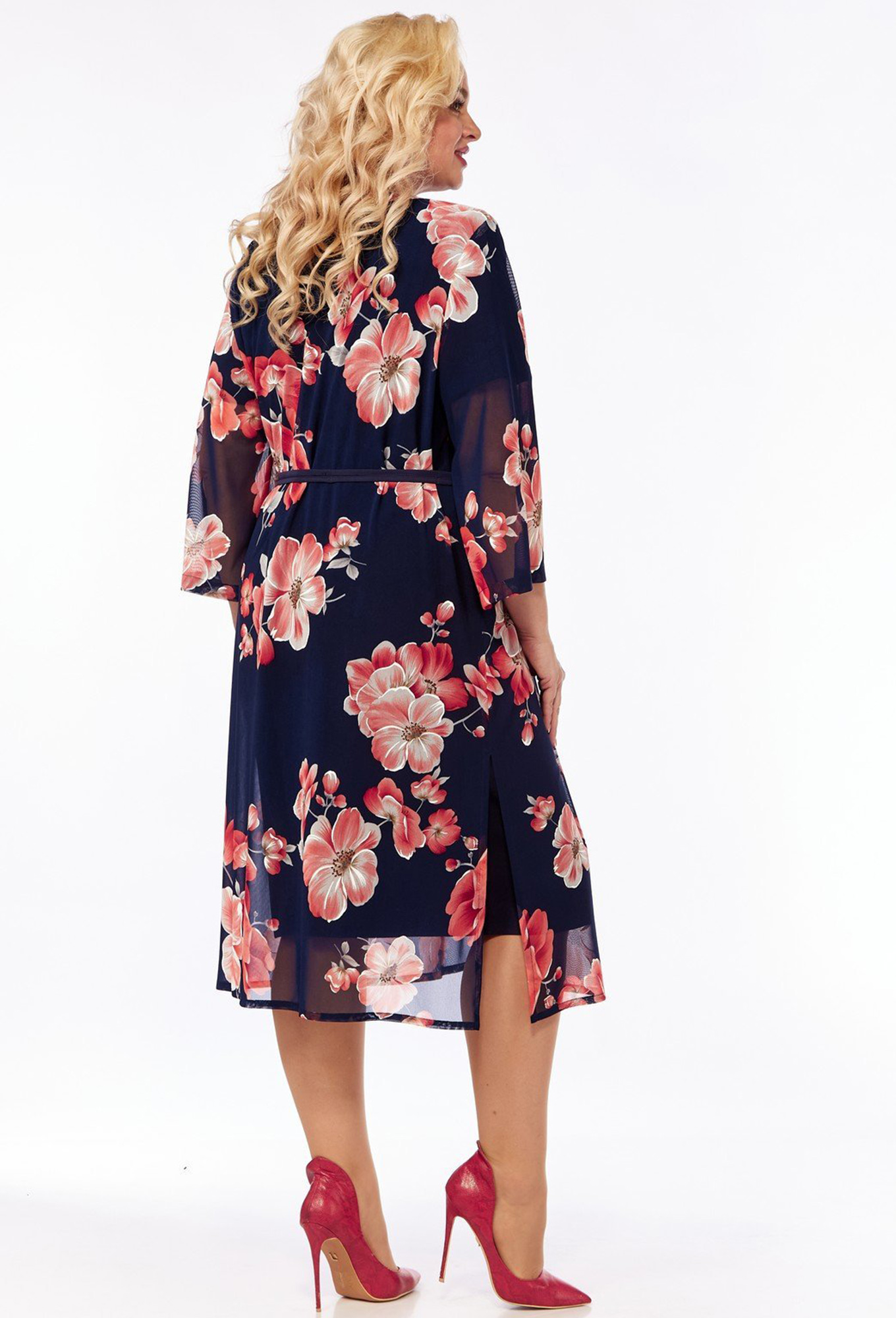 Модель: ВИЛЕНА 901 т. синий красные цветы<..показать/li> Рост: 164 см (девушка на фото ростом 170см) Сезон: Весна-Лето Тип ткани: Платье- Полиэстер – 64% Вискоза – 32% Спандекс – 4%Кардиган- Полиэстер – 100%Комплект женский 2-х предметный состоит из кардигана и платья. Кардиган прямого силуэта без застёжки с разрезами по боковым швам и притачной планкой по краю борта. Рукав длинный, расширенный к низу. Платье полуприлегающего силуэта с застёжкой на потайную тесьму «молнию» в среднем шве спинки. Перед со средним швом и декоративными рельефными швами от пройм к боковым швам. Спинка со средним швом заканчивающимся шлицей и талиевыми вытачками. Рукав втачной, одношовный, короткий. Горловина углублена, обработана обтачкой. Комплект укомплектован съёмным поясом – завязкой из ткани в цвет платья.