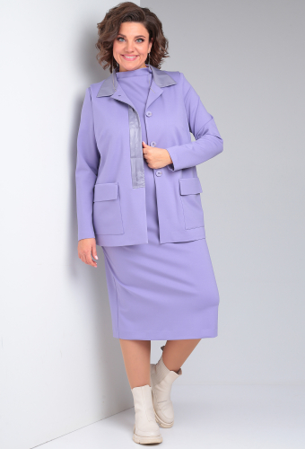 Модель: ВИЛЕНА 936 сирень Рост: 1..показать64 см (девушка на фото ростом 170см) Сезон: Осень-Зима Тип ткани: Вискоза 70%, ПА 25%, спандекс 5%Костюм женский двухпредметный, состоящий из платья и жилета из трикотажного полотна с отделкой из плащёвки. Жилет женский полуприлегающего силуэта длиной до бёдер с центральной декоративной застёжкой с подрезом на 4 петли-пуговицы. По переду обработаны нагрудные вытачки, идущие из бокового шва и накладные карманы, имитирующие клапан. Спинка со средним швом. Воротник отложной. Жилет на подкладке. Платье женское, слегка зауженное к низу, полуприлегающего силуэта, длиной до колена с цельнокроеным воротником-стойкой. По деталям переда обработаны нагрудные вытачки. Спинка со средним швом, заканчивающимся шлицей. Рукава втачные, длинные, одношовные.