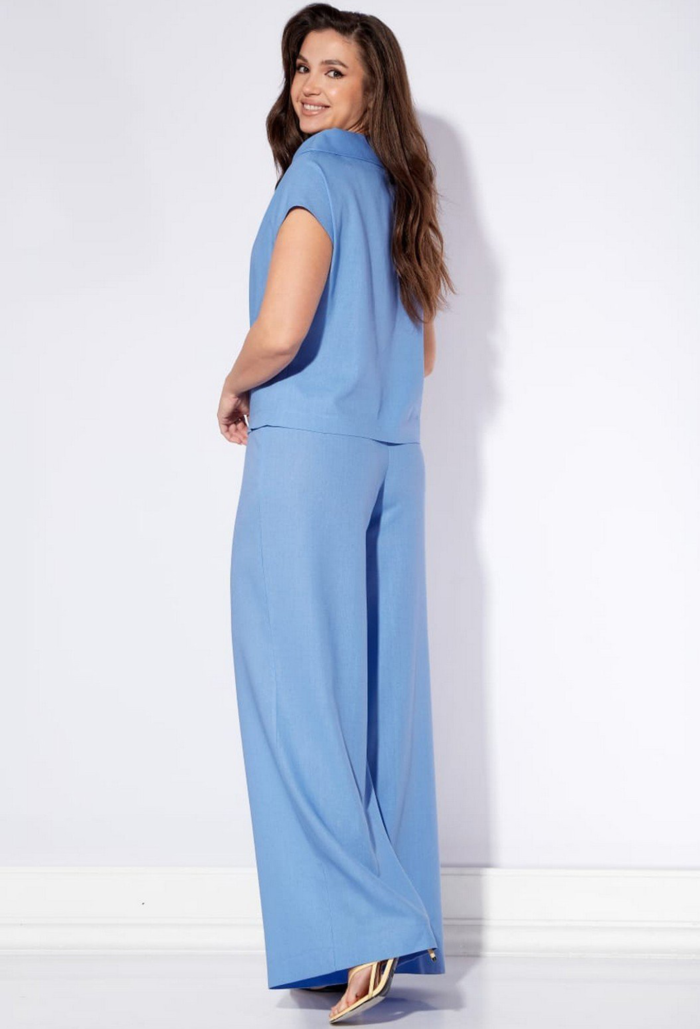 Модель: Виола Стайл 20366 голубой ..показать>Рост: 164 см (рост модели на фото 170см) Сезон: Весна-Лето Тип ткани: Полиэстер 55%, лён 45%Костюм женский, состоит из блузки и брюк. Блузка со спущенным плечом, свободного силуэта точка горловина лодочкой с точным асимметричным воротником. Вниз изделия закреплён широкой отделочной строчкой, по срезу проймы проложена отделочная строчка. Брюки палаццо, широкие к низу на приточном поясе, частично на резинке и застёгивается на одну петлю и пуговицу. На передней половине обработана встречная складка с булочками и регулируется шнуровкой точка по задней половине обработаны. Низ на широкую фотку с отделочной строчкой.
