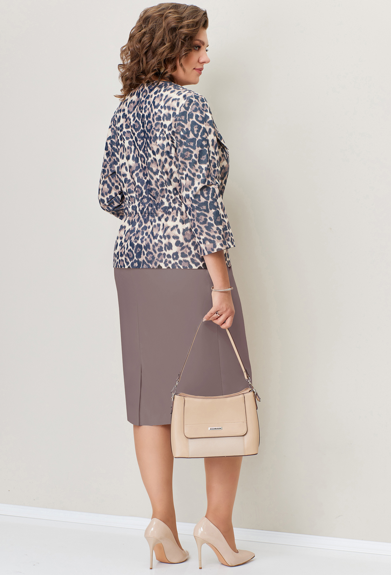 Модель: Волна 1367 капучино Рост:..показать 164 см (девушка на фото ростом 170см) Сезон: Круглогодичный Тип ткани: Жакет- хлопок 60%, полиэстер 37%, эластан 3%Юбка- полиэстер 66%, вискоза 33%, эластан 1%Жакет приталенного силуэта из джинсового текстиля на основе хлопка с потайной застежкой на пуговицы. Рукав втачной, длина рукава 48 см. Длина жакета по центру спинки- 61см. Классическая юбка, со шлицей и застежкой на молнию. Длина юбки - 67 см. 164 см (девушка на фото ростом 170см)