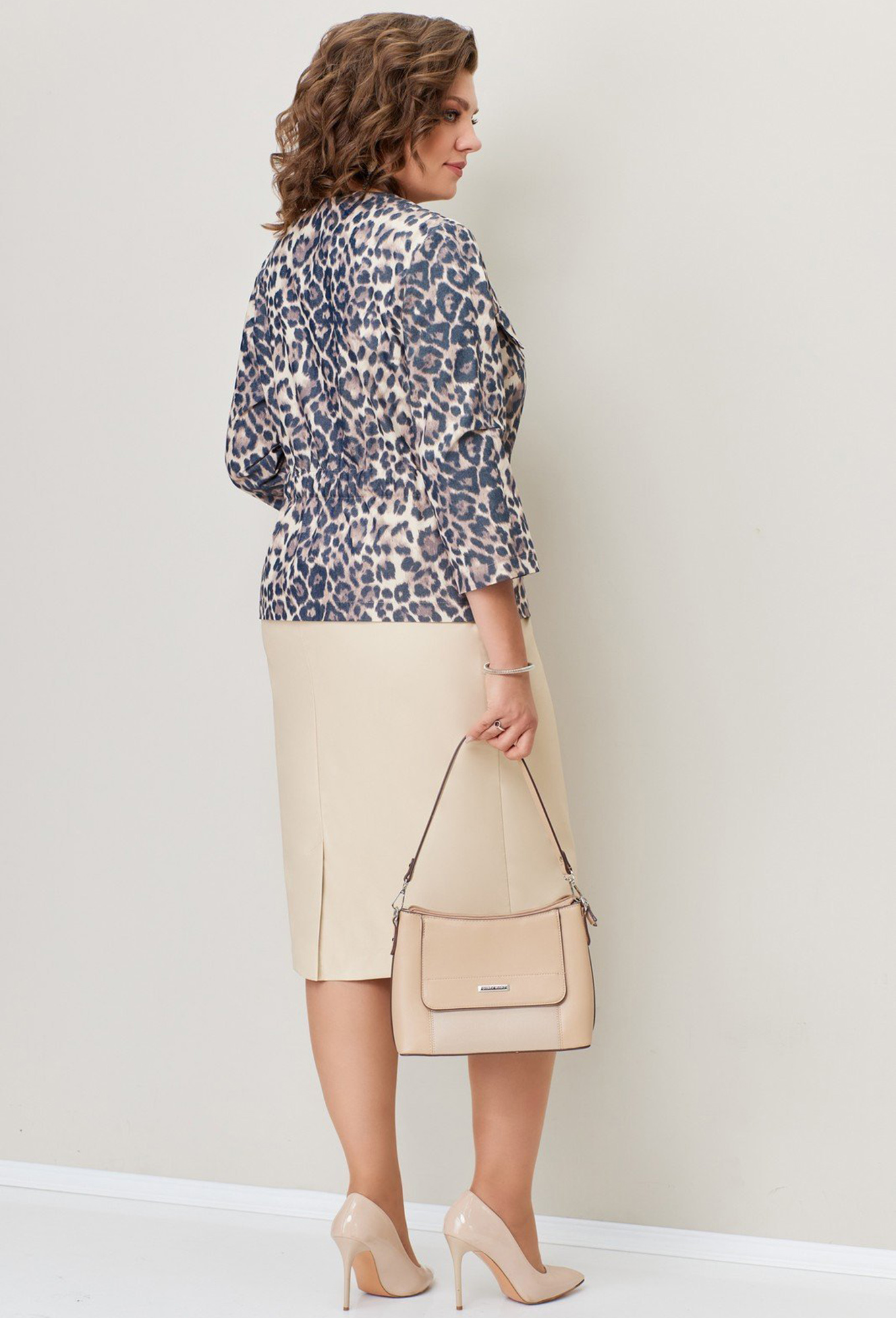 Модель: Волна 1367 молочный Рост:..показать 164 см (девушка на фото ростом 170см) Сезон: Круглогодичный Тип ткани: Жакет- хлопок 60%, полиэстер 37%, эластан 3%Юбка- нижний слой - полиэстер 100%, верхний слой - полиуретан 100%Жакет приталенного силуэта из джинсового текстиля на основе хлопка с потайной застежкой на пуговицы. Рукав втачной, длина рукава 48 см. Длина жакета по центру спинки- 61см. Классическая юбка, со шлицей и застежкой на молнию из эко-кожи. Длина юбки - 67 см. 164 см (девушка на фото ростом 170см)